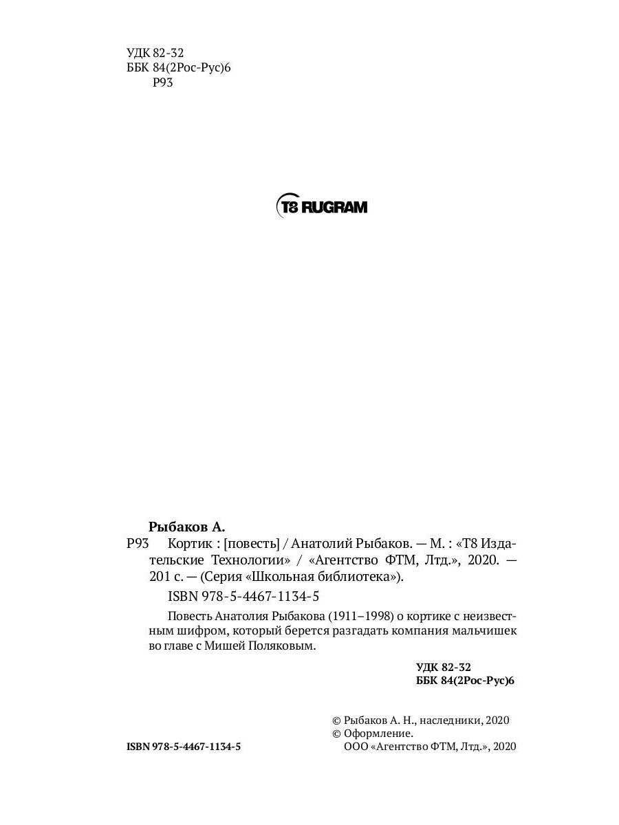 #ASTTD# Search Terms: Рыбаков А.Н. , Ribakov A.N. , Т8 RUGRAM (ФТМ) , T8 RUGRAM (FTM) , Школьная библиотека , Shkolnaya biblioteka , 9785446711345 , 978-5-4467-1134-5 , 1629730