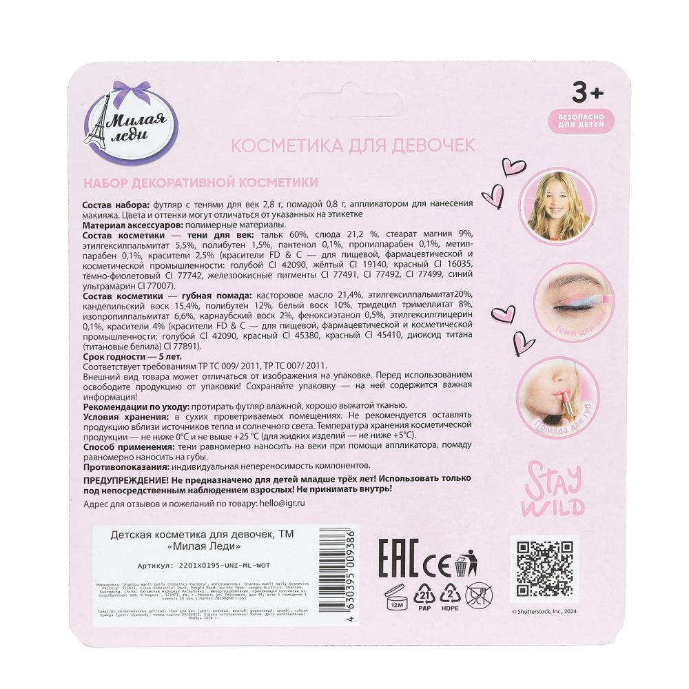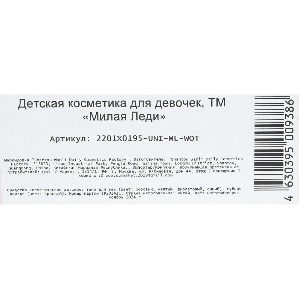 Косметика ДЛЯ ДЕВОЧЕК набор косметики: тени для век, помада для губ МИЛАЯ ЛЕДИ в кор.2*432шт