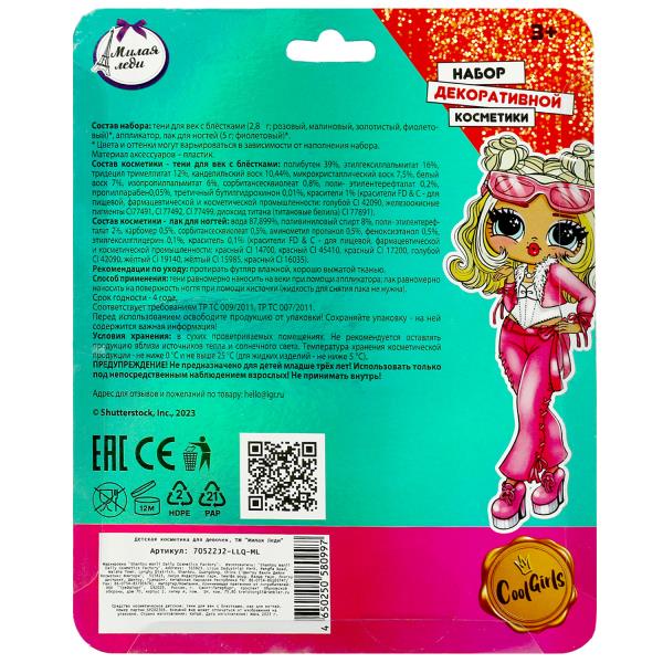 Косметика ДЛЯ ДЕВОЧЕК тени для век с блесками, лак для ногтей МИЛАЯ ЛЕДИ в кор.2*288шт