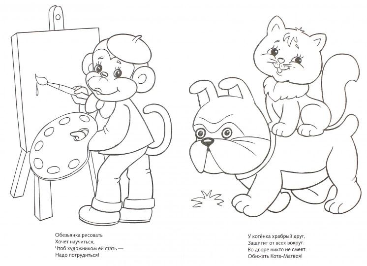 Кошечка в корзинке. Стихи для малышей. Раскраска