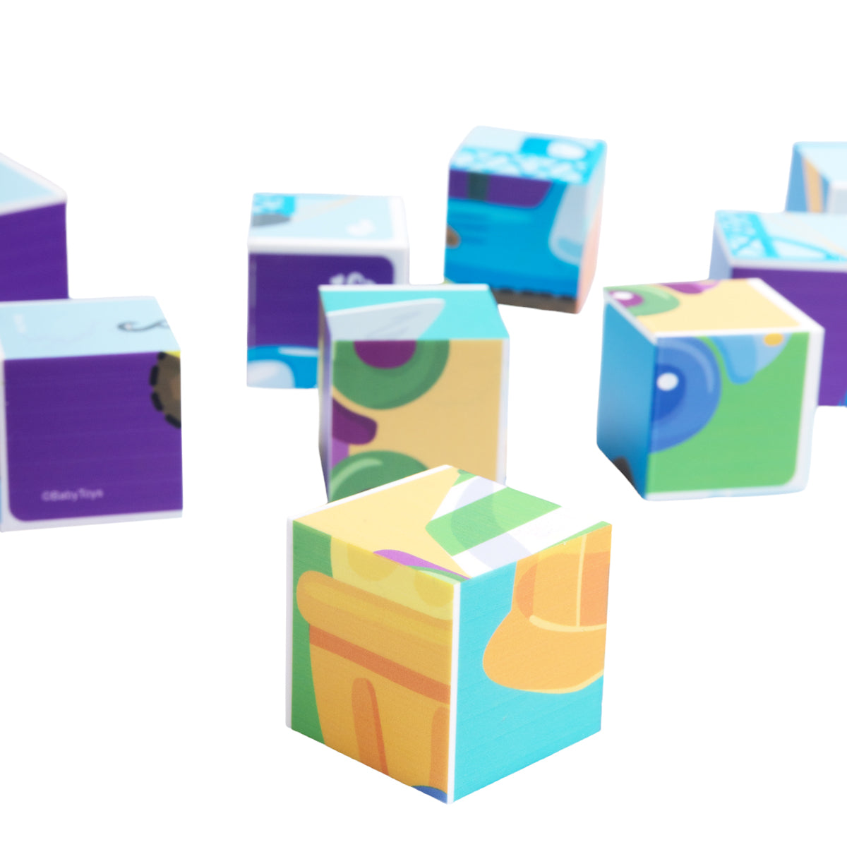 Кубики «На стройке» (серия Baby Toys). Состав: кубики пластмассовые — 9 шт. (4 х 4 см). Материал: пластик с нанесением рисунка (без обклейки). Для детей от 3 лет. Игра с кубиками развивает воображение, память, логическое и пространственное мышление, а также дает щипковый захват и мелкую моторику рук.