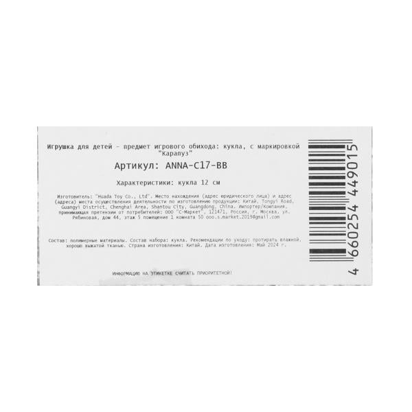 Игрушка "Кукла Аня 12 см, кор КАРАПУЗ в кор.120шт". Размер: 0,045.