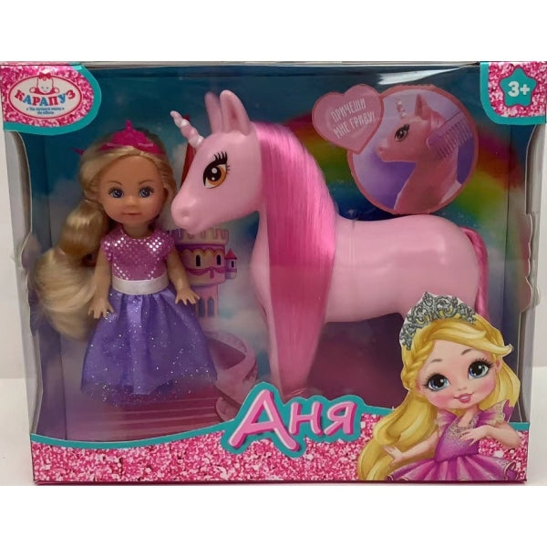 Кукла Аня 12 см с единорогом, кор КАРАПУЗ в кор.60шт