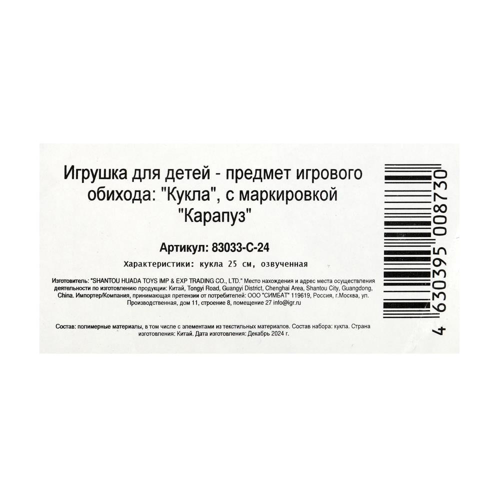 Игрушка "Кукла на бат озвучка Маша и Медведь маша 25 см, озвучка, зимняя одежда, кор КАРАПУЗ в кор.18шт". Размер: 0,09045.