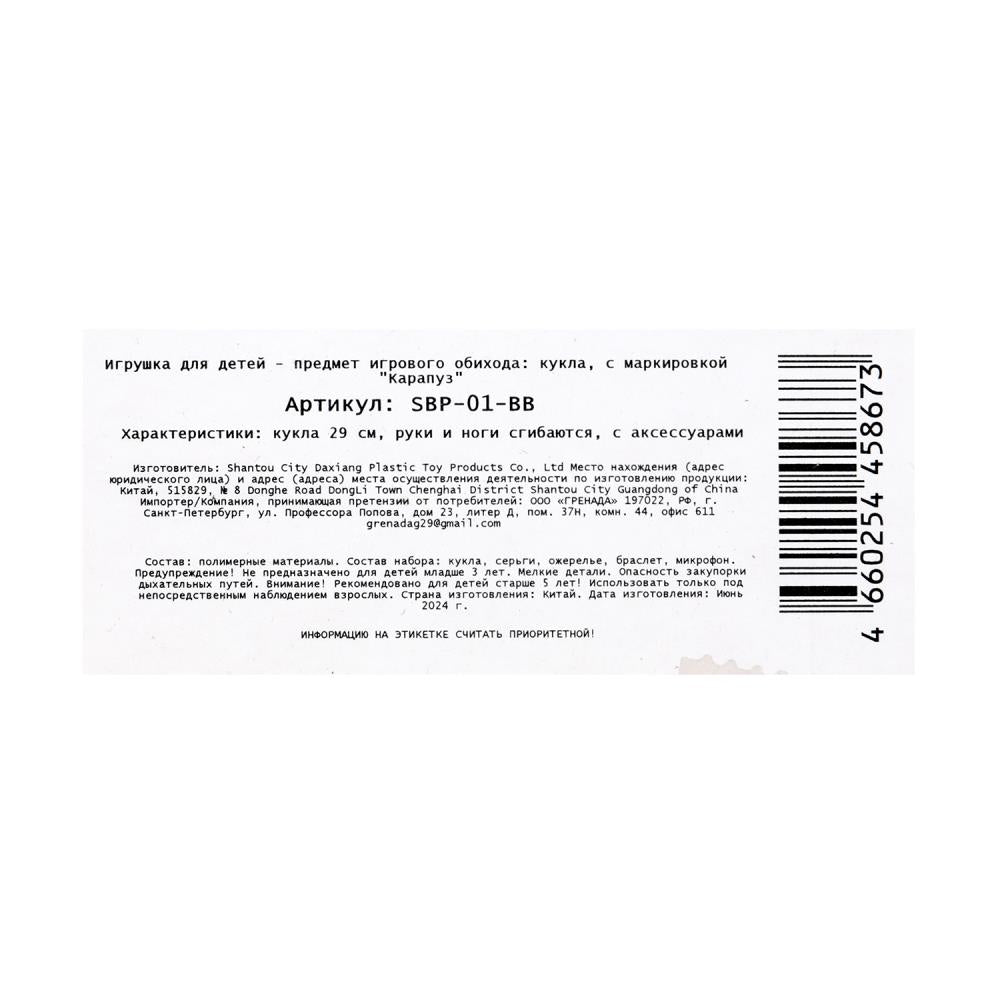 Игрушка "Кукла 29см София, руки и ноги сгиб., акс., кор. КАРАПУЗ в кор.24шт". Размер: 0,087.