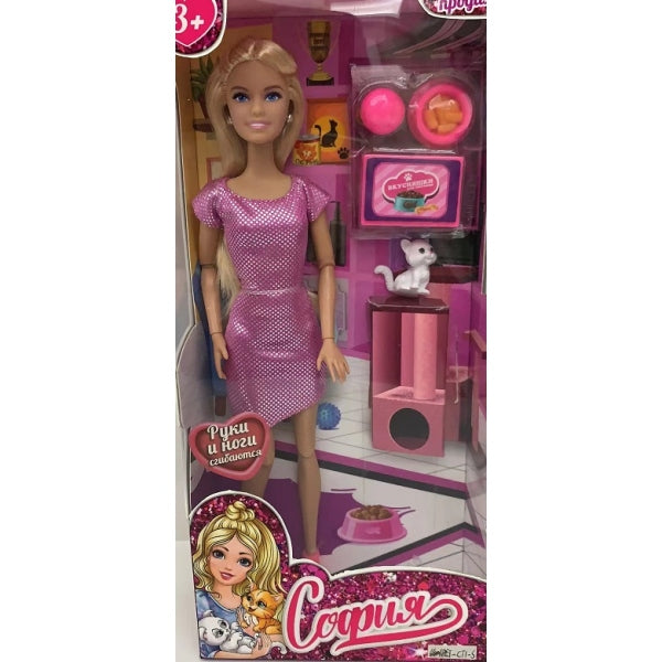 Кукла 29см София, руки и ноги сгиб., питомец, акс, кор КАРАПУЗ в кор.24шт