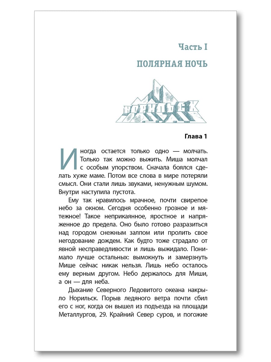 Handling time: 19 days (12+) В самом северном городе мира Норильске климат суров. И жизнь не делает поблажек, даже если ты еще вроде бы ребенок. Мише не исполнилось и четырнадцати лет, но обстоятельства складываются так, что ему самому приходится думать о заработке, еде, теплой одежде. Как же, оказывается, раньше все было легко и просто! А теперь даже не у кого попросить помощи, и так тяжело делать вид, что у тебя по-прежнему всё в порядке.