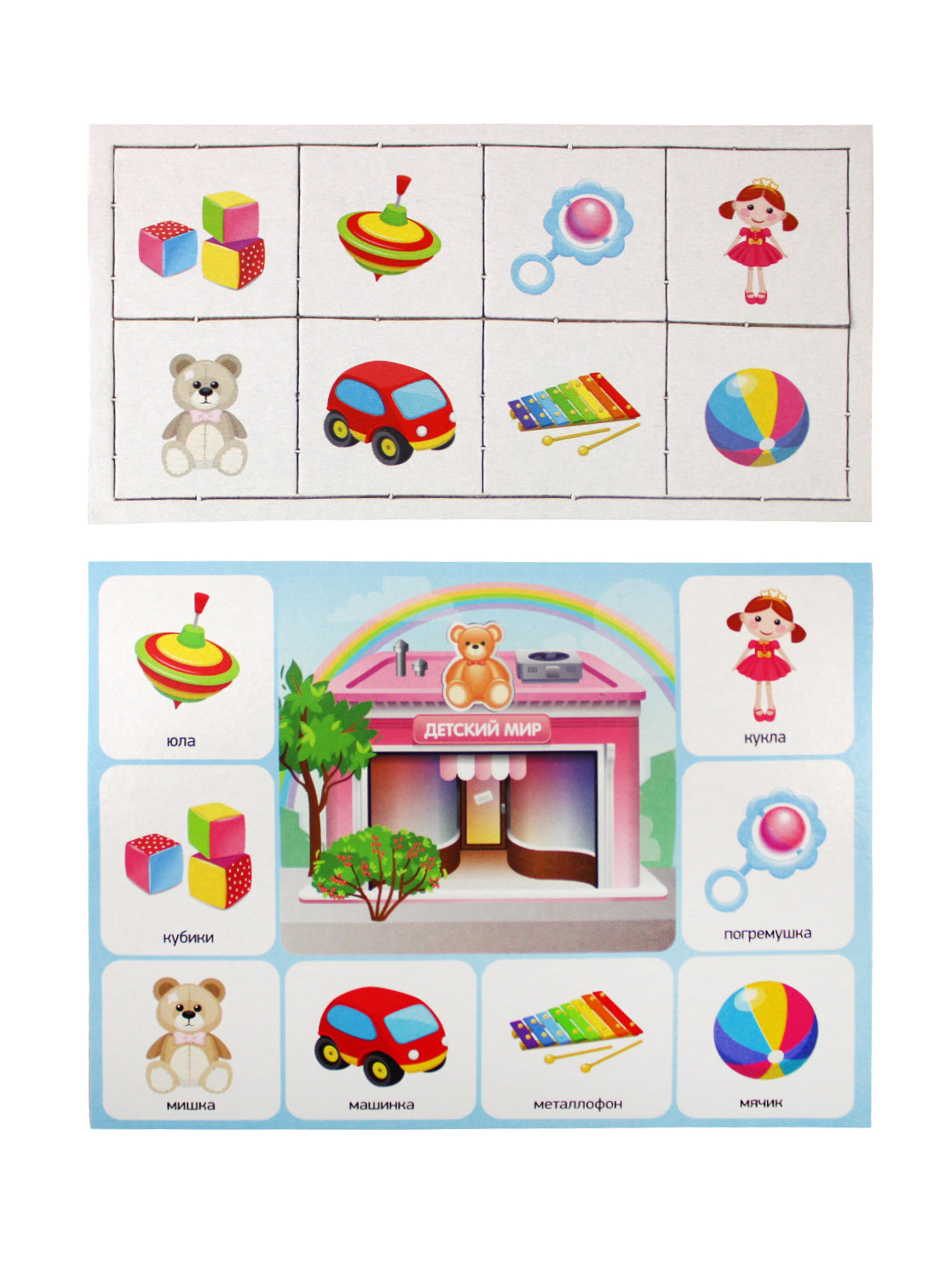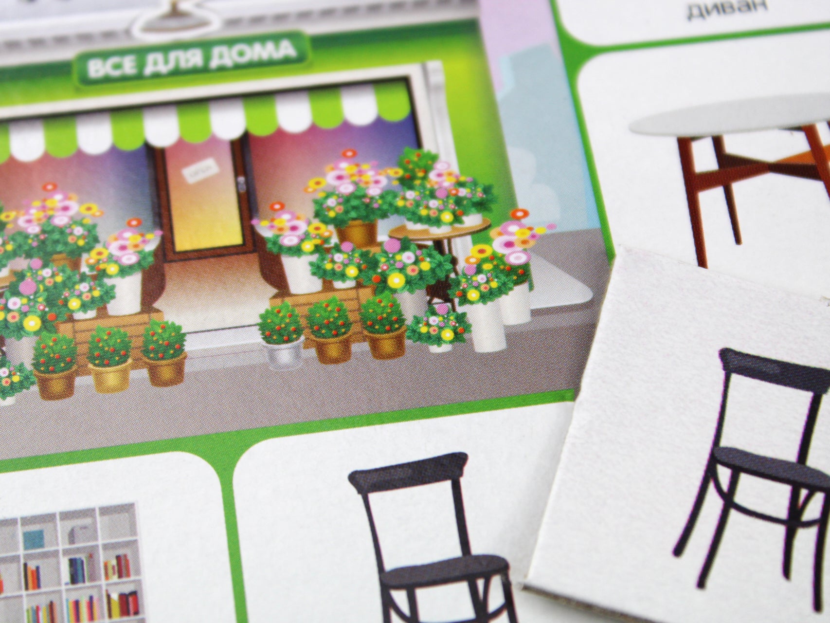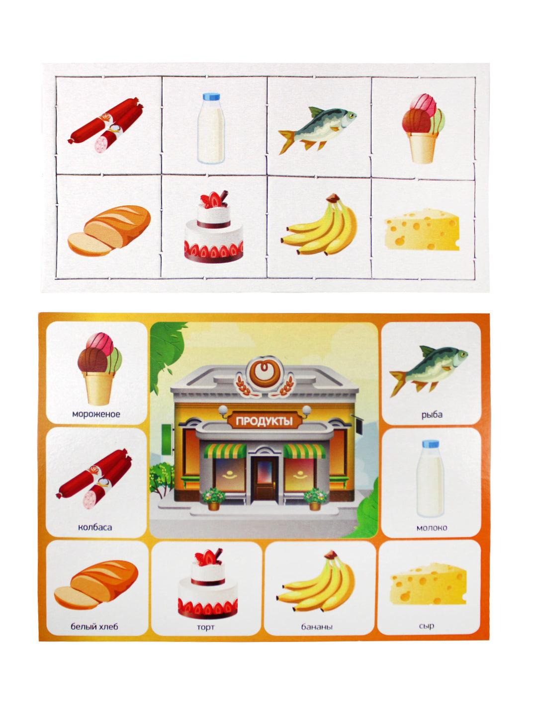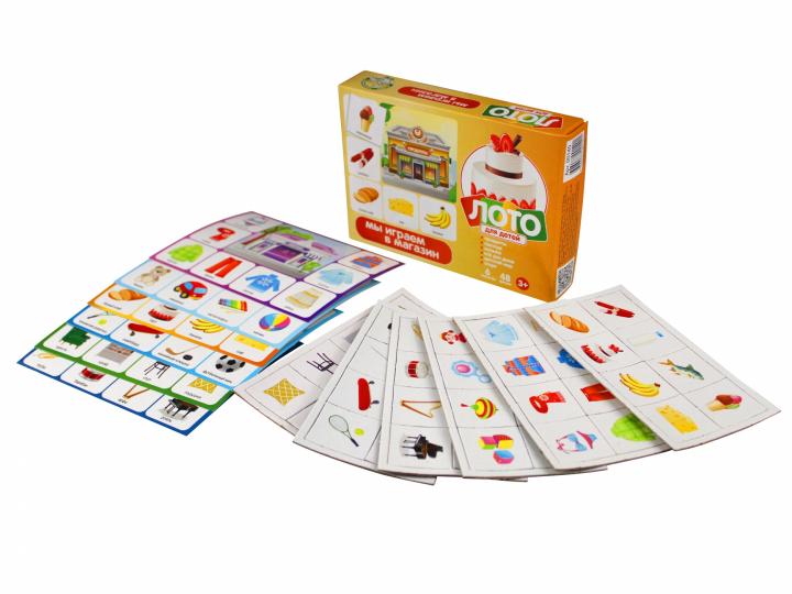 Изучать многообразие товаров на прилавках в различных магазинах поможет маленькое картонное лото «Мы играем в магазине». Это развивающее детское лото состоит из: — 6 больших картонных карточек размером 15x11 см. На каждом из них изображены различные отделы магазинов (спортивного, продуктового, мебельного, магазинов игрушек, одежды и инструментов) и соответствующий ассортимент товаров.- 48 маленьких карточек размером 3,5x3,5 см с изображением различных товаров, соответствующих тематике магазинов. Простые правила разрешают принимать участие в игре детям от 3 лет. Количество игроков от 2 до 6 человек.Цель игры - познакомить ребенка с товарами и предметами на прилавках магазинов.Лото «Мы играем в магазине» развивает память, наблюдательность, расширяет кругозор.В интернет-магазине «Десятое королевство» можно купить малое картонное лото «Мы играем в магазине» по выгодной цене, с доставкой по России.