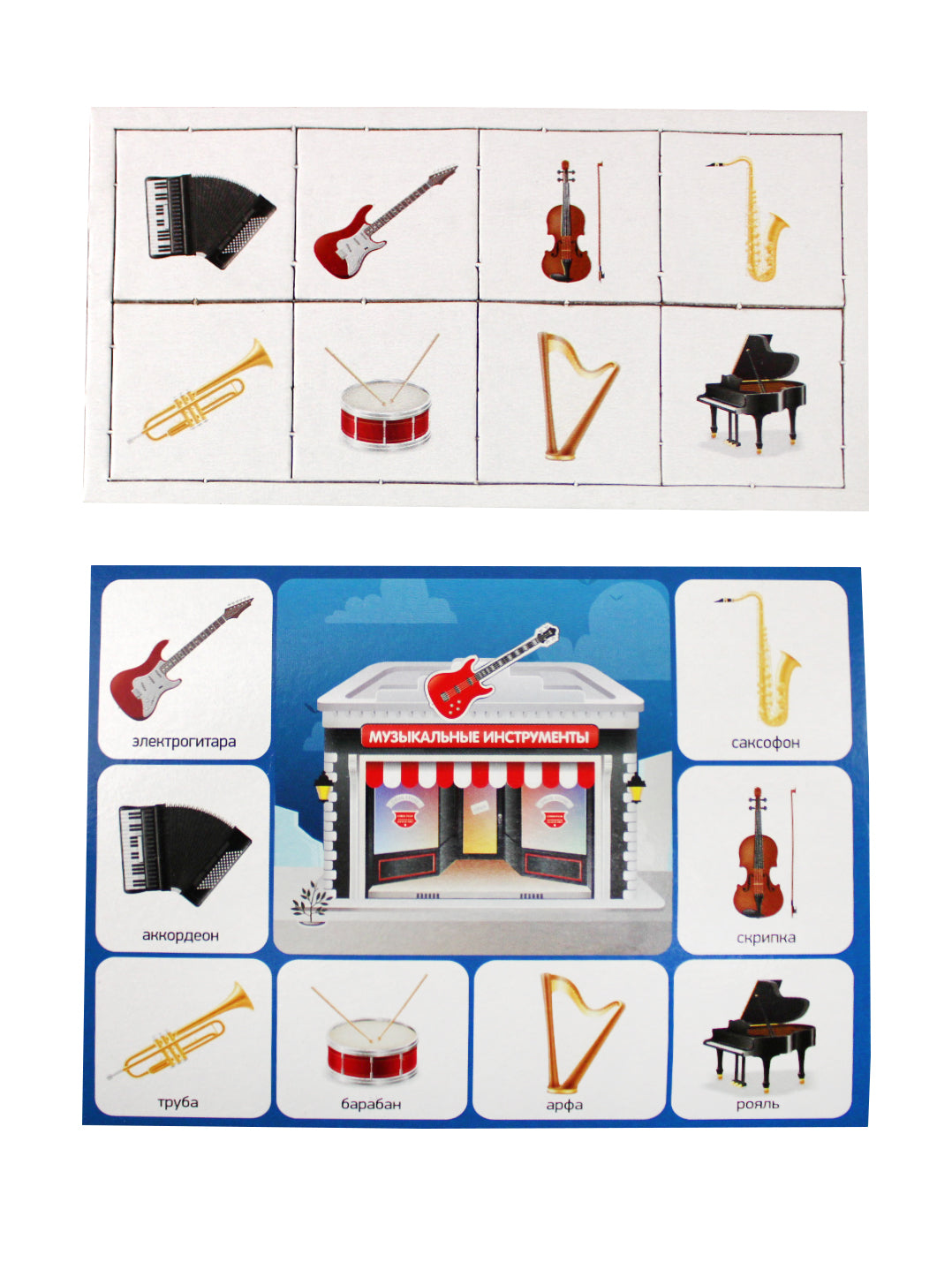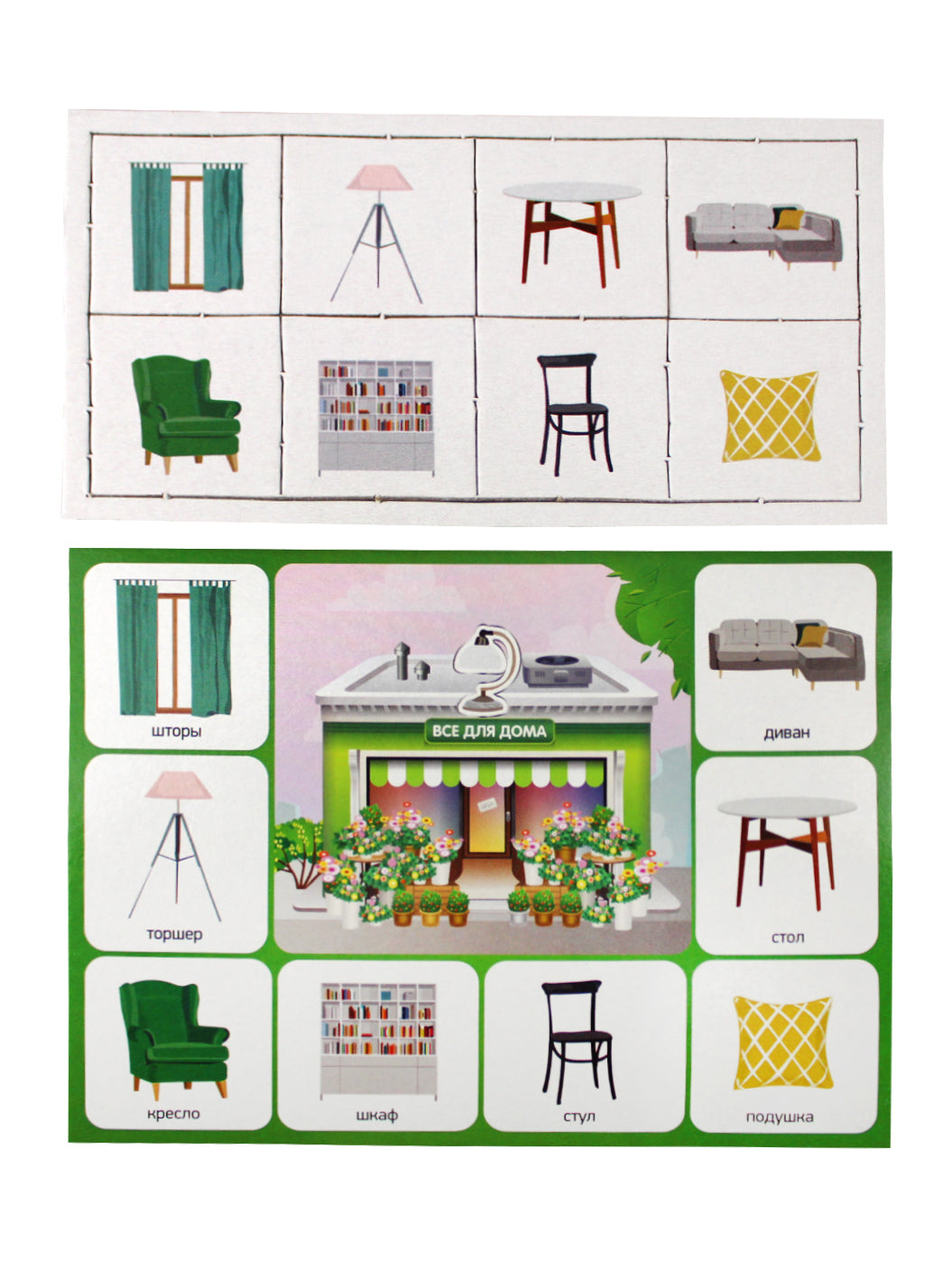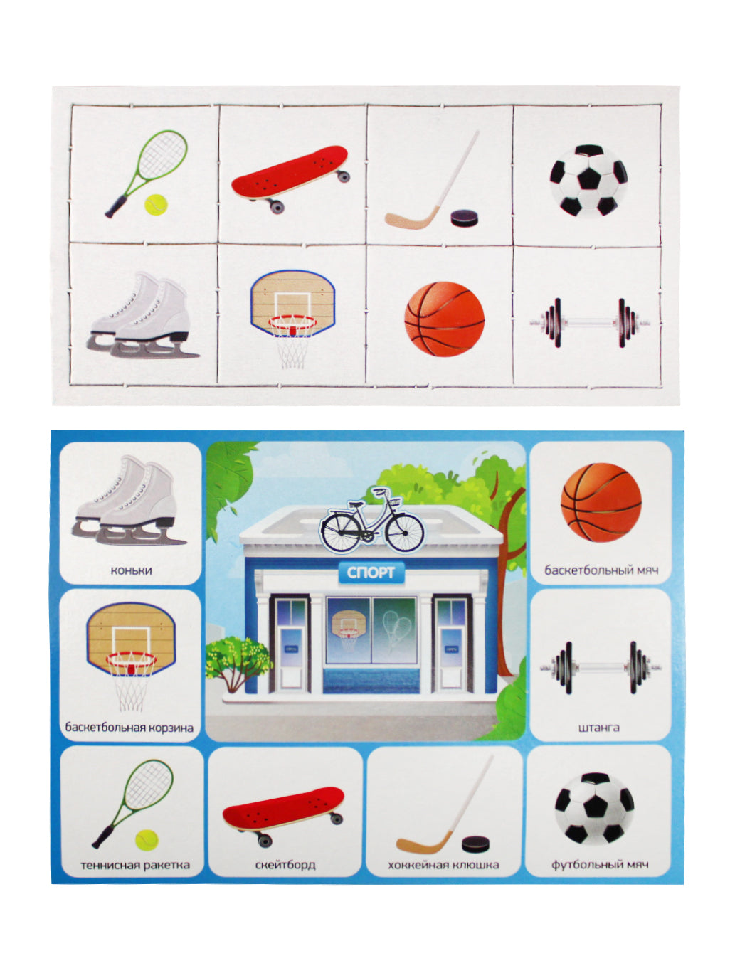 Изучать многообразие товаров на прилавках в различных магазинах поможет маленькое картонное лото «Мы играем в магазине». Это развивающее детское лото состоит из: — 6 больших картонных карточек размером 15x11 см. На каждом из них изображены различные отделы магазинов (спортивного, продуктового, мебельного, магазинов игрушек, одежды и инструментов) и соответствующий ассортимент товаров.- 48 маленьких карточек размером 3,5x3,5 см с изображением различных товаров, соответствующих тематике магазинов. Простые правила разрешают принимать участие в игре детям от 3 лет. Количество игроков от 2 до 6 человек.Цель игры - познакомить ребенка с товарами и предметами на прилавках магазинов.Лото «Мы играем в магазине» развивает память, наблюдательность, расширяет кругозор.В интернет-магазине «Десятое королевство» можно купить малое картонное лото «Мы играем в магазине» по выгодной цене, с доставкой по России.