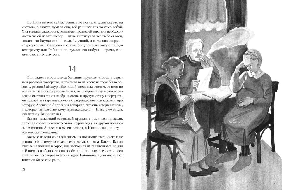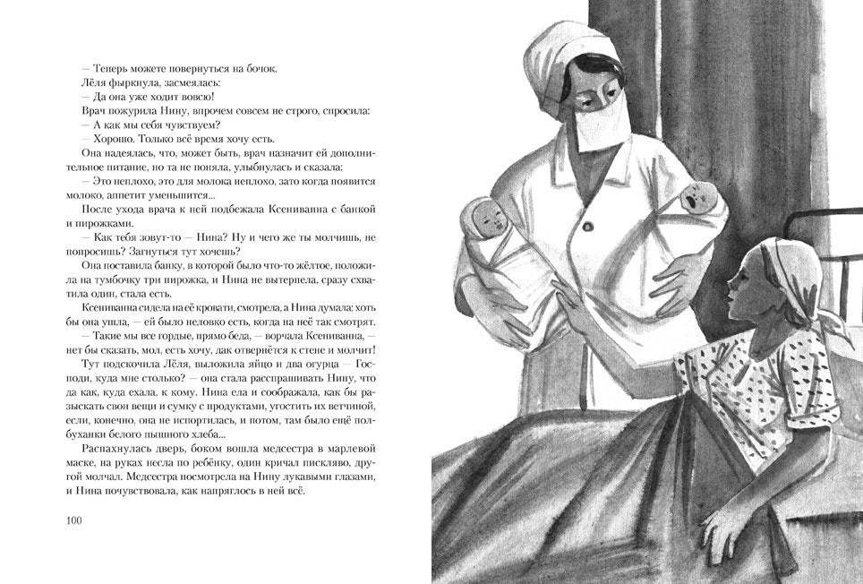 Handling time: 24 days Идёт 1941 год. Студентка Нина Нечаева, ожидающая ребёнка, прощается с супругом и отправляется в эвакуацию в Ташкент. Ей, дочери генерала, не знавшей лишений, суждено увидеть и узнать войну настоящую, спутники которой — страшный голод и холод, расставания, потери и предательства. Не раз смерть заглядывала в глаза Нине, но девушка боролась — не ради себя, а ради сына. Её судьба, судьба её семьи — яркое отражение истории нашей страны. И роман Марии Васильевны Глушко повествует о том, как из малого складывается идеал материнства и что значат в нашей жизни самопожертвование и сострадание. В иллюстрациях Елизаветы Бухаловой оживает образ Нины Нечаевой, тихой молодой женщины, которая прошла через множество испытаний и сумела сохранить в себе добрый свет — чтобы было чем жить дальше.