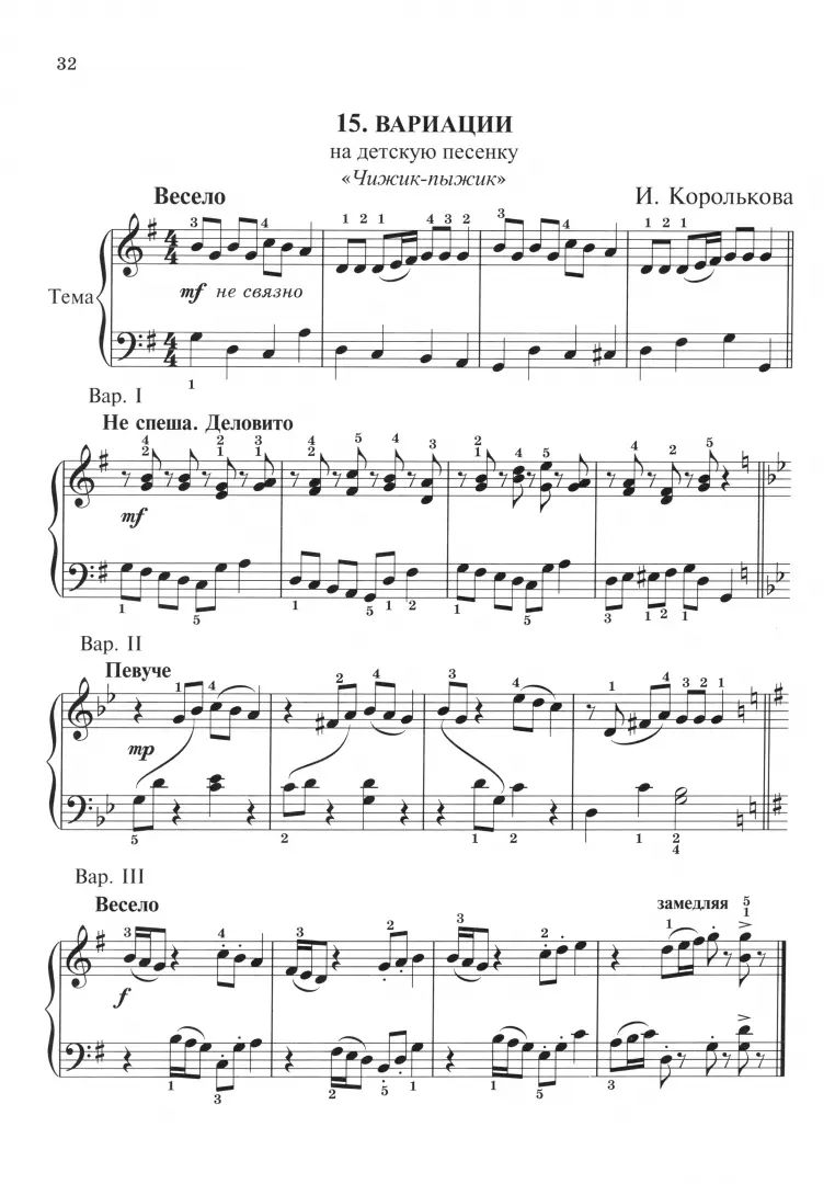 Сборник позволяет решить проблему дефицита проявлений крупной формы для формирования учебного и концертного репертуара начинающих пианистов. Он предназначен ученикам фортепианного отделения первого и второго классов ДМШ и ДШИ, а также может быть предпочтительным ученикам других специальностей в рамках предмета «Общее фортепиано». Жанр вариаций — наиболее понятный и удобный для знакомства с крупной формой. Пьесы, составляющие сборника, написаны на темы известных песен, удобны для запоминания. Они отличаются доступностью изложений, мелодичностью, компактностью. Вариации в сборнике расположены в порядке возрастания сложности.