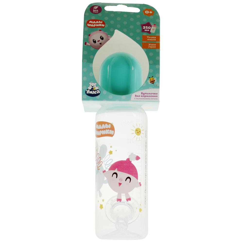 Малышарики. бутылочка для кормления, МАЛЫШАРИКИ узкое горло, 250 мл, без ручек. Умка в кор.6шт