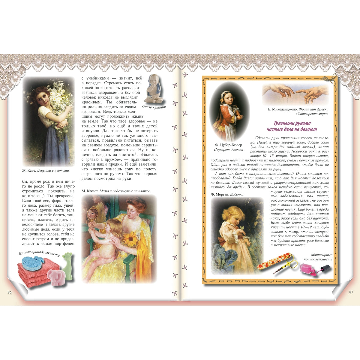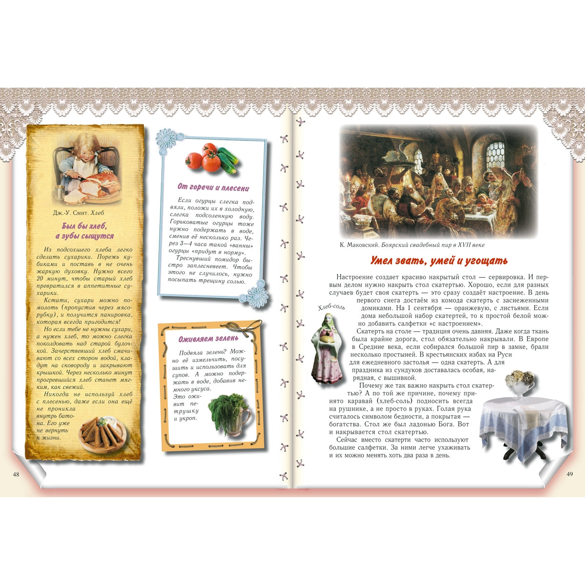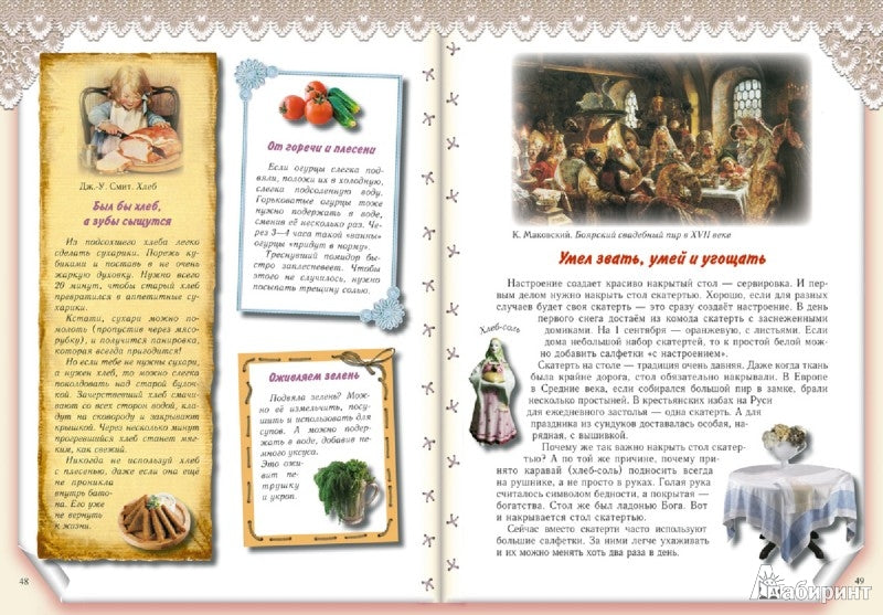 Красочно оформленная книга полезных советов по домоводству для юных хозяек «Мамина помощница» расскажет о традициях воспитания девочек на Руси, поможет освоить премудрости домашнего хозяйства и приёма гостей, откроет секреты красоты и здоровья. В старину девочек с самого раннего возраста приучали к домашнему хозяйству. Крестьянские семьи были большими, одной маме со всеми делами было не управиться, поэтому старшая дочь была её первой и главной помощницей. Ткать, прясть, вышивать, шить одежду, нянчить маленьких детей, содержать дом в чистоте и порядке, готовить еду и накрывать на стол, принимать гостей, ухаживать за домашними животными – всё умела мамина помощница. Наша книга поможет современным девочкам освоить премудрости домашнего хозяйства и приёма гостей, откроет некоторые секреты красоты и здоровья. После прочтения этой книги мамам уже не придётся жаловаться, что дочка не желает помогать по дому. Потому что девочкам от 4 до 14 лет очень захочется стать настоящими хозяйками. Автор откроет секрет, как сделать скучную работу интересной, научит подходить с любовью к каждому делу. Лёгкие рецепты, полезные советы, мудрые пословицы помогут быстро справиться с работой. Ждёт девочек и разговор о здоровье и красоте. Эта книга может стать хорошей помощницей и взрослым, и маленьким хозяйкам. Об авторе Колпакова Ольга Валериевна родилась в Алтайском крае. В настоящее время живет и работает в Екатеринбурге. Закончила факультет журналистики Уральского государственного университета. Работала преподавателем масс-медиа в педагогической гимназии № 116 (Екатеринбург), редактором журнала «Витаминка» – первого в России периодического издания «для любознательных детей и заботливых родителей», публикующего игры и методики для раннего развития и обучения детей. За разработку и осуществление этого проекта была награждена благодарственной грамотой губернатора Свердловской области и премией «Профессиональный успех» (журнал «Космополитен»). Как начинающий автор в 1990 году была поощрена стипендией губернатора области и отделения Союза писателей Свердловской области. Является составителем и одним из авторов серии «Умные игры» (издательство «У-Фактория»), автором развивающей серии «Игра – дело серьезное» (по заказу губернатора Свердловской области и Федерации детских организаций), автором развивающих игр «Тайны Екатеринбурга» (по заказу администрации города) и «Святые места Урала» (по заказу Екатеринбургской епархии). Публикуется в литературных сборниках и периодических изданиях: «Костер», «Кукумбер», «Почитай-ка», «Ералаш», «Спокойной ночи, малыши», «Ежик» и др. Первая книга автора вышла в издательстве «Дрофа» в 2001 году. В настоящее время является редактором газеты для детей «Тихая минутка», альманаха «Летучий кораблик», ведущей рубрики «Дети» в журнале «Будьте счастливы» и активным автором издательства «Белый город».