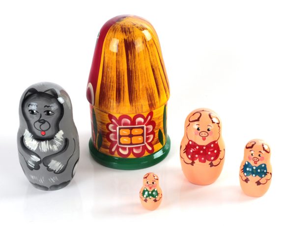 Матрешка "Три поросенка" (5 в 1: дом, волк, 3 поросенка) арт.Р-45/932 (РНИ) /24