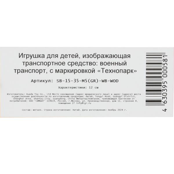 Игрушка "Машина металл АРМИЯ РОССИИ УРАЛ с ракетами 12 см, двери, инерция Технопарк в кор.2*24шт". Размер: 0,049688.