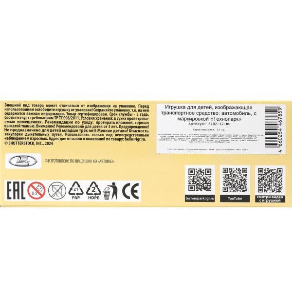 Игрушка "Машина металл ваз-2102 12 см, двери, багажник, инер,голубой, кор. Технопарк в кор.2*36шт". Размер: 0,079.