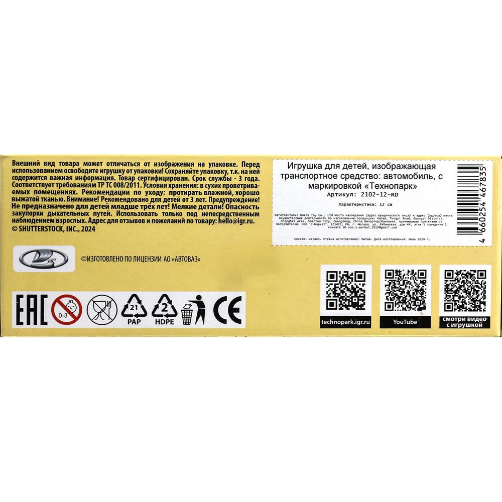 Игрушка "Машина металл ваз-2102 12 см, двери, багаж, инер, красный, кор. Технопарк в кор.2*36шт". Размер: 0.08.