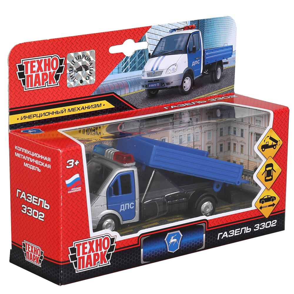 Машина металл ГАЗЕЛЬ 3302 САМОСВАЛ ПОЛИЦИЯ, 12 см, дв., баг., инерц., кор. Технопарк в кор.2*24шт