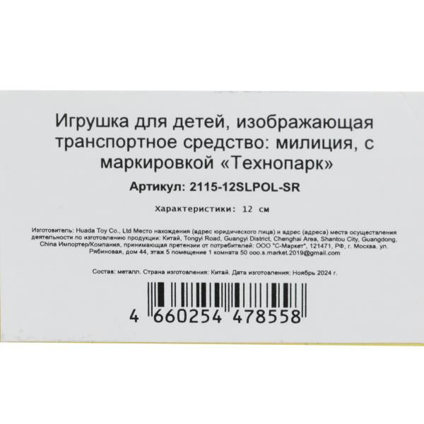 Игрушка "Машина металл свет-звук ваз-2115 самара ПОЛИЦИЯ 12 см, двери, багажник, кор. Технопарк в кор.2*36шт". Размер: 0,081225.
