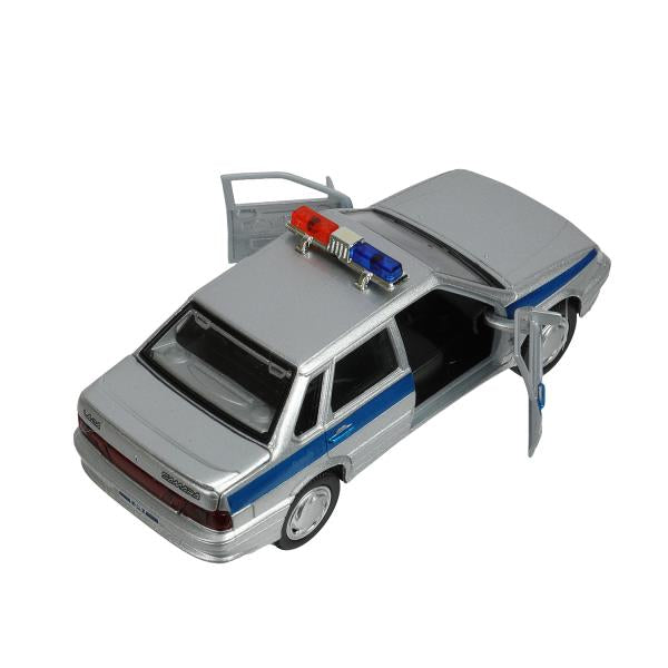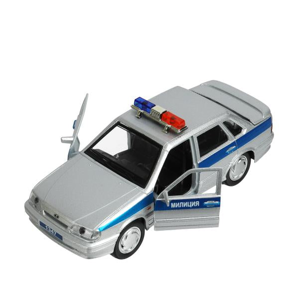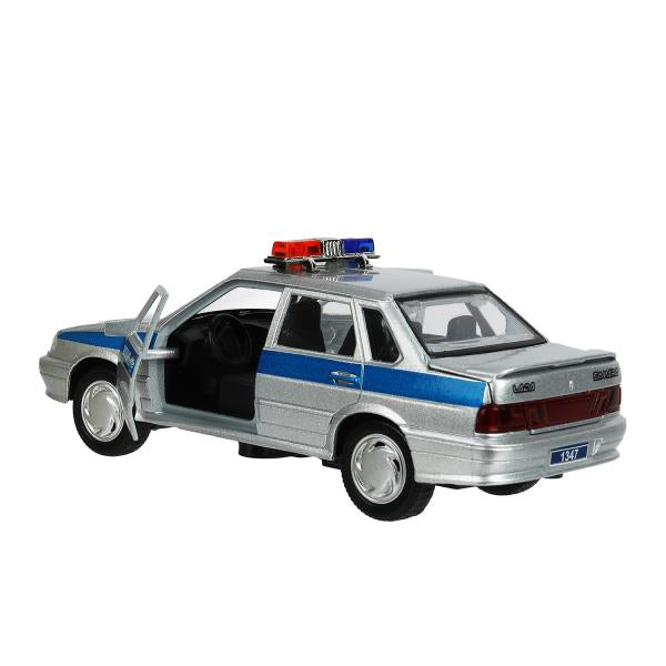 Машина металл свет-звук ваз-2115 самара ПОЛИЦИЯ 12 см, двери, багажник, кор. Технопарк в кор.2*36шт