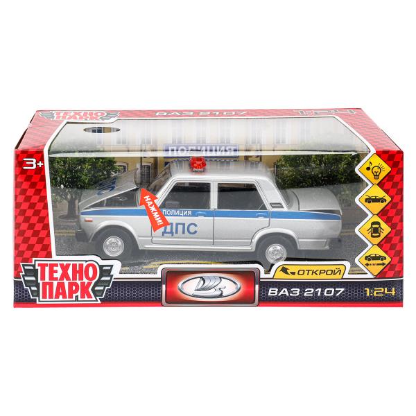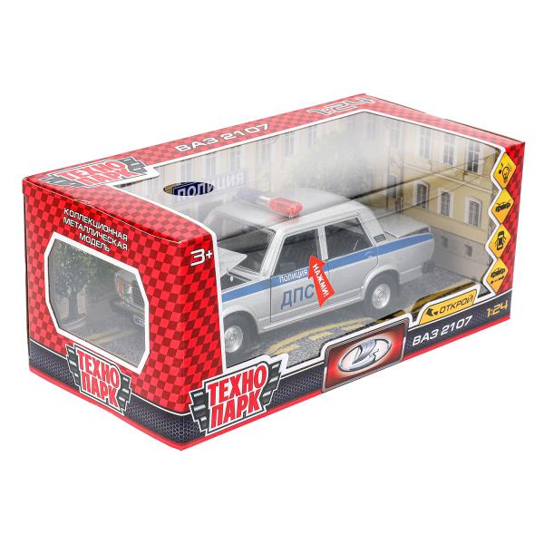 Машина металл свет-звук LADA ваз 2107,дв,к,баг,св-зв,ин,17,5 см,ПОЛИЦИЯ сер Технопарк в кор.2*18шт