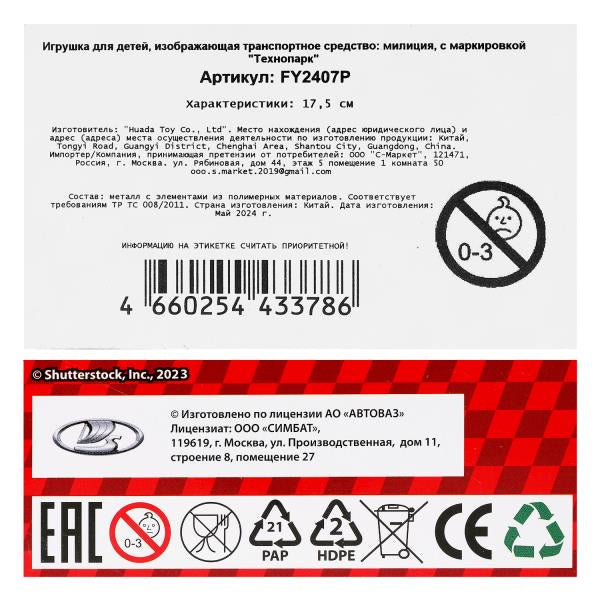 Игрушка "Машина металл свет-звук LADA ваз 2107,дв,к,баг,св-зв,ин,17,5 см,ПОЛИЦИЯ сер Технопарк в кор.2*18шт". Размер: 0,136.