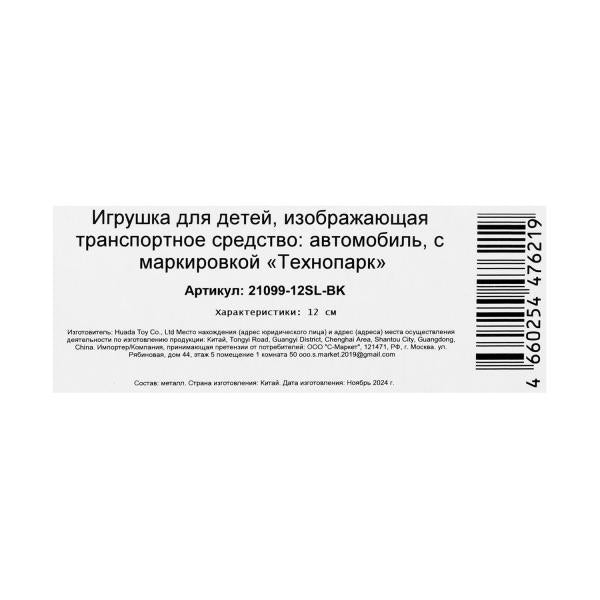 Игрушка "Машина металл свет-звук LADA 21099"спутник",12см,откр дв,баг,инер,черный,кор Технопарк в кор.2*36шт". Размер: 0,080292.