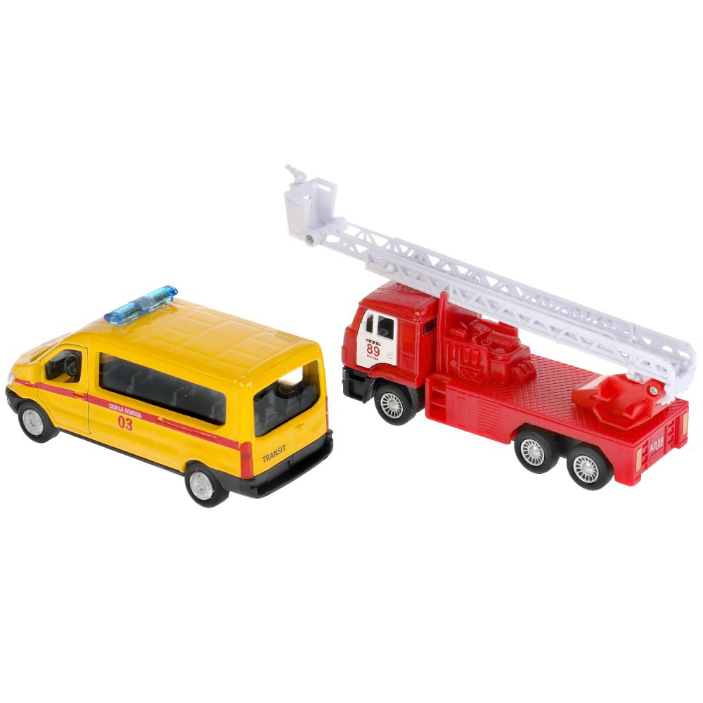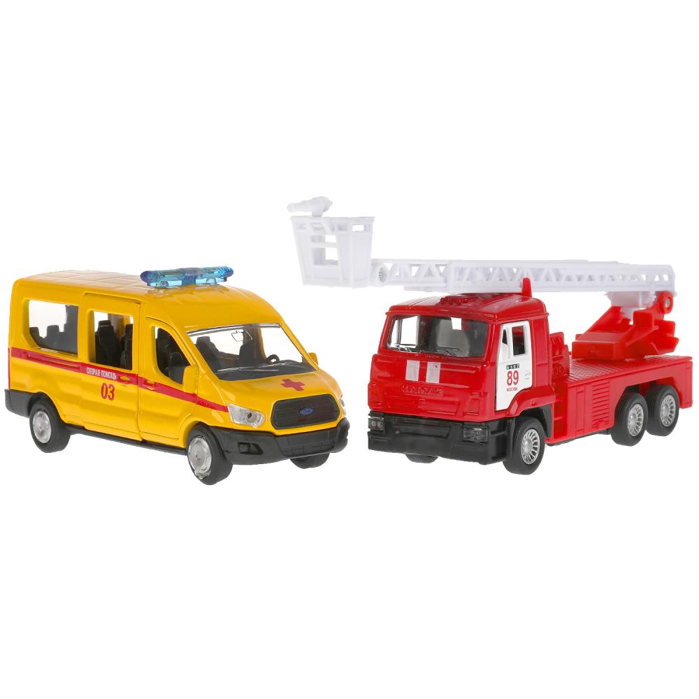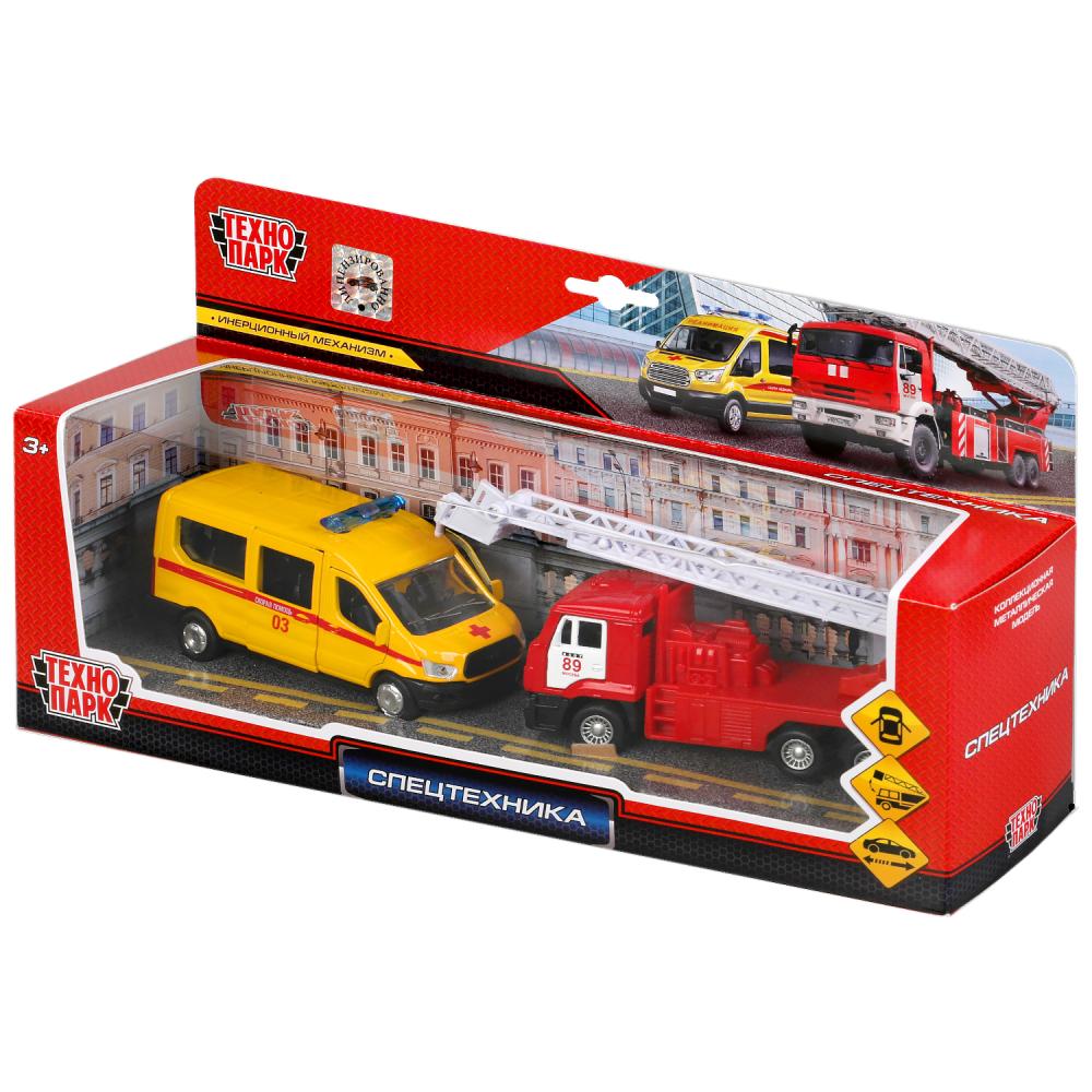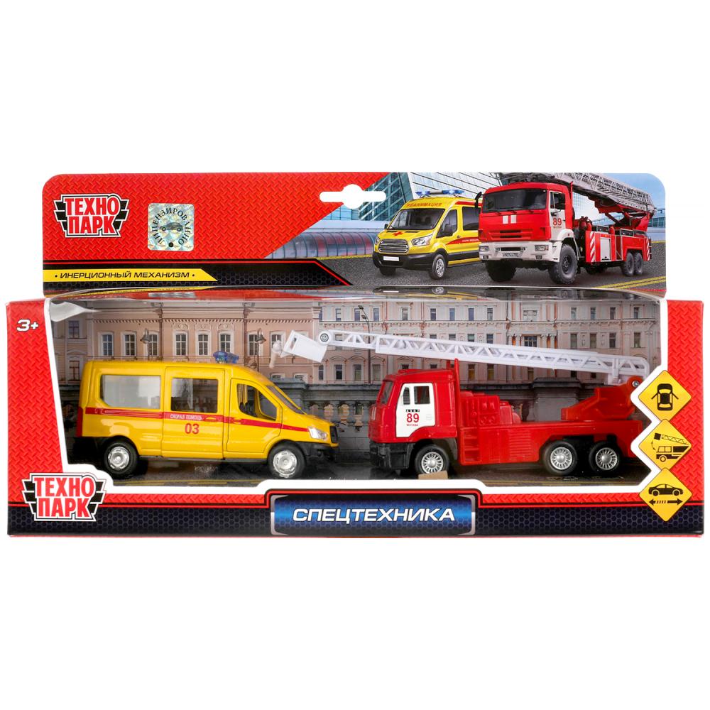 Машина металл СПЕЦТЕХНИКА СКОРАЯ 12 см+пожарная 12 см, открыв. двери, инерц. Технопарк в кор.2*12шт