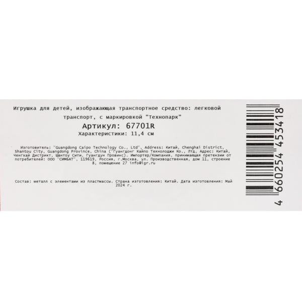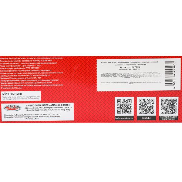 Игрушка "Машина металл HYUNDAI ELANTRA, 11,4 см, двери, инерция, кор. Технопарк в кор.2*48шт". Размер: 0.104.