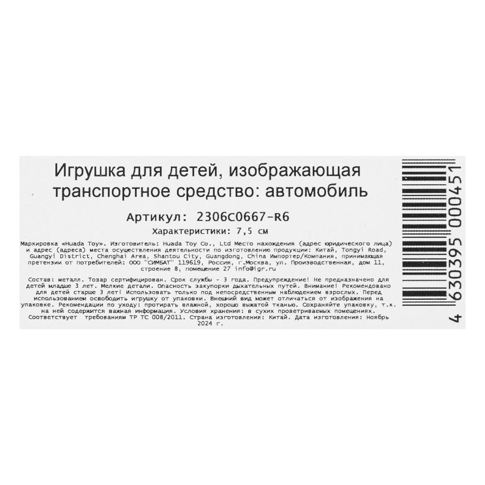 Игрушка "Машина металл jeep WRANGLER SAHARA, 7,5 см, инерция, блистер - в кор.2*288шт". Размер: 0,158.