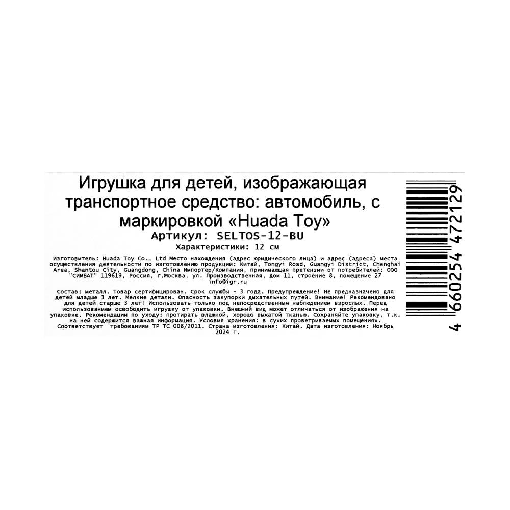 Игрушка "Машина металл KIA seltos длина 12 см, двери, багажник., инерц, синий, кор. Технопарк в кор.2*36шт". Размер: 0,079.
