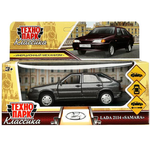Машина металл ВАЗ-2114 "САМАРА" 12 см, дверь, сумка, ин, баклажан, кор. Технопарк в кор.2*36шт