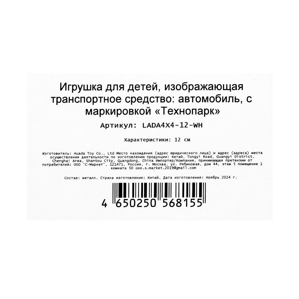 Игрушка "Машина металл LADA 4x4 длина 12 см, двери, багажник, инерц, белый, кор. Технопарк в кор.2*36шт". Размер: 0,088.