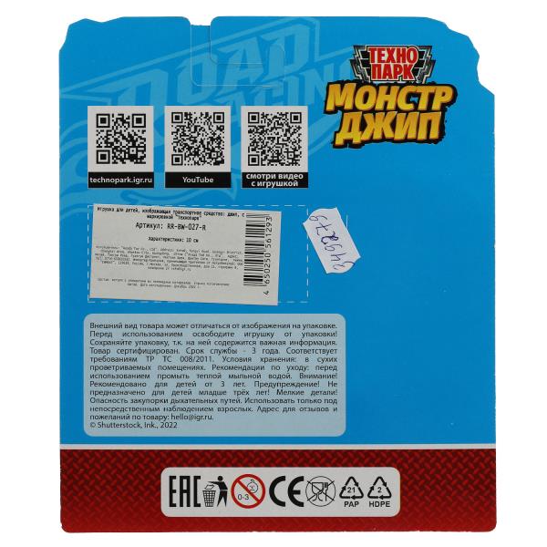 Игрушка "Машина металл ROAD RACING МОНСТР ДЖИП 10 см, желтый, блист. Технопарк в кор.2*144шт". Размер: 0,282.