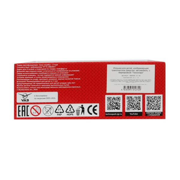 Игрушка "Машина металл УАЗ ХАНТЕР длина 10,5 см, инерция, серебристый, кор. Технопарк в кор.2*36шт". Размер: 0,081.