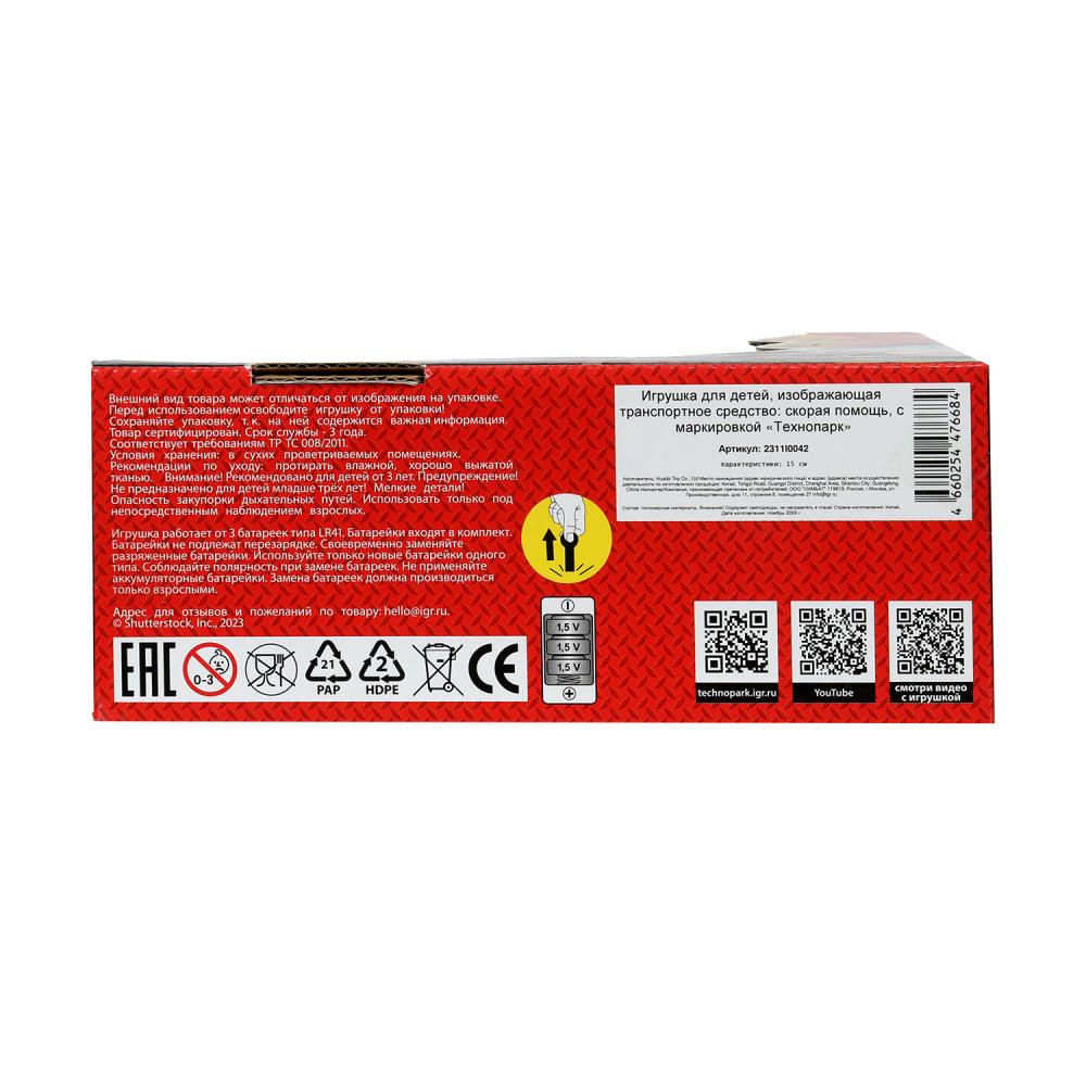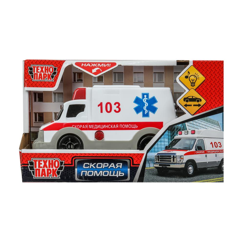 Игрушка "Машина пластиковая свет-звук СКОРАЯ ПОМОЩЬ 15 см, кор. Технопарк в кор.2*48шт". Размер: 0,236.