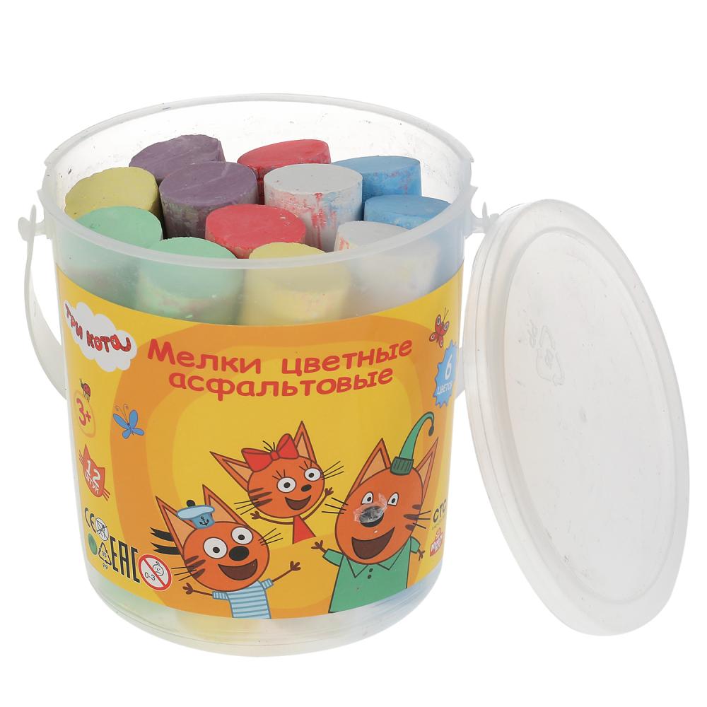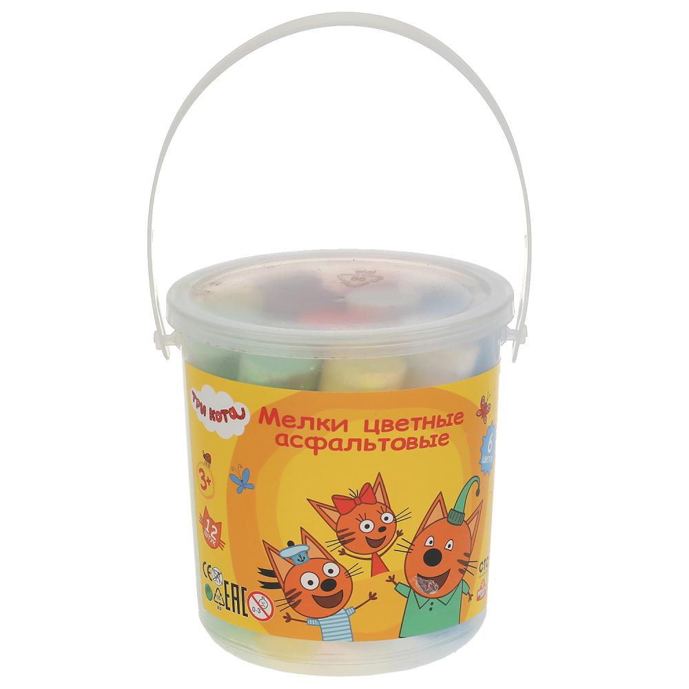 Мелки цветные асфальтовые для творчества, Три Кота 12 шт (6 цв), в ведре МУЛЬТИ АРТ в кор.24наб