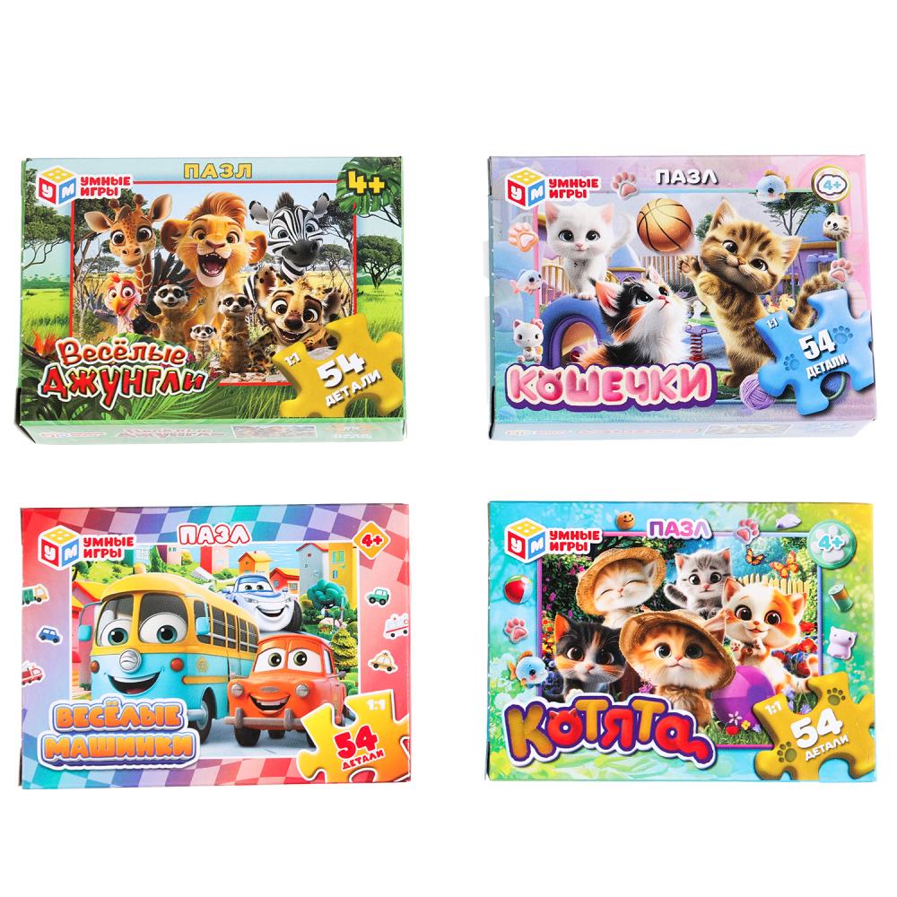 Игрушка "Микс. Пазлы классические в коробке. Пазл 54 детали. Умные игры в уп.32шт в кор.8уп". Размер: 0,0538.