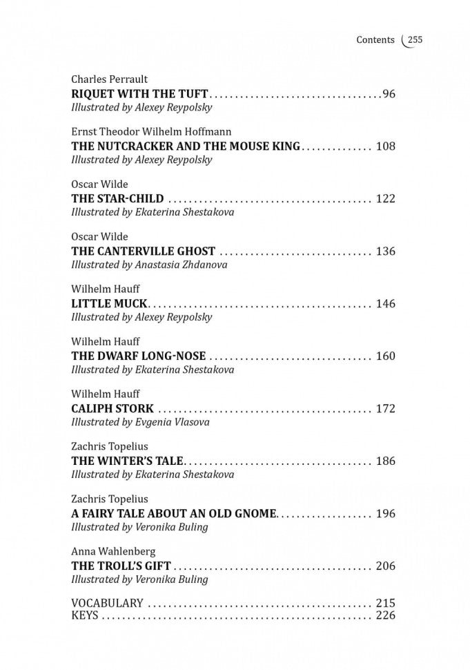 Handling time: 24 days 19 иллюстрированных сказок Андерсена, Перро, братьев Гримм, Гауфа, Гофмана, Уайльда, Топелиуса на английском языке. Упражнения после каждой сказки помогут легко усвоить новую современную лексику и отработать грамматические навыки. Черно-белые иллюстрации не отвлекают от чтения, способствуют пониманию прочитанного. Тексты адаптированы для детей среднего школьного возраста. В конце книги — ключи к упражнениям для самопроверки. Сказки: «Синяя Борода», «Рике с хохолком», «Подарки феи», «Оле-Лукойе», «Волшебный холм», «Золотой гусь», «Госпожа Метелица», «Рикки-Тикки-Тави», «Слоненок», «Кошка, которая гуляла сама по себе», «Кентервильское привидение», «Мальчик-звезда», «Щелкунчик и Мышиный король», «Карлик Нос», «Маленький Мук», «Калиф-аист», «Сказка про старого гнома», «Зимняя сказка», «Подарок тролля».