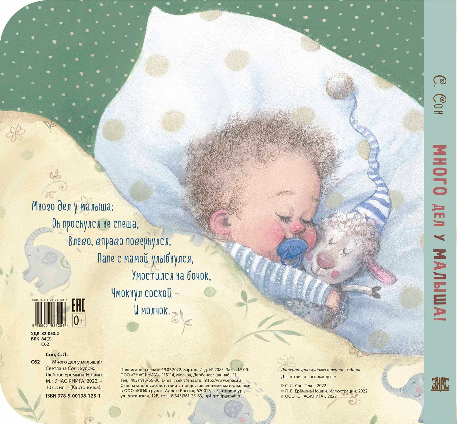 Как Много дел у малыша! Проснуться, потянуться, встретить солнышко, умыться под веселую считалочку. А потом - зарядка и прогулка, где так много интересного! Как хорошо покачаться на любимой лошадке, как весело покатать любимую машинку! Ну и, конечно, почитать с мамой книжку на ночь…О полном событий счастливом дне маленьких мальчишек и девчонок рассказывают веселые стихи Светланы Сон и забавные рисунки Любови Ерёминой-Ношин.Разделите с малышами их радость!Книга напечатана на плотном картоне.Для чтения взрослыми детям.