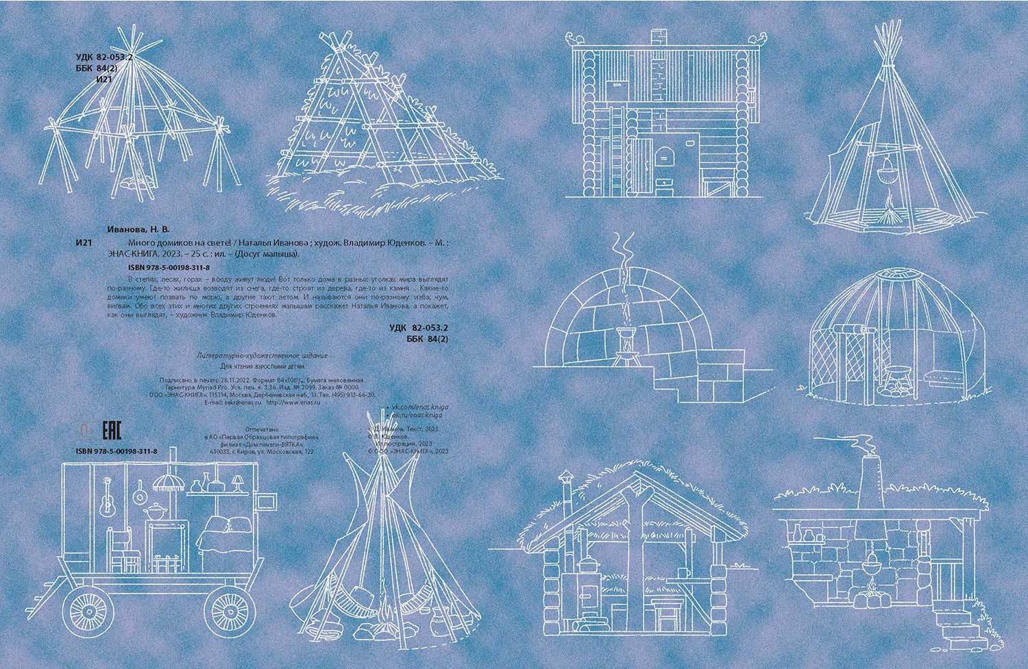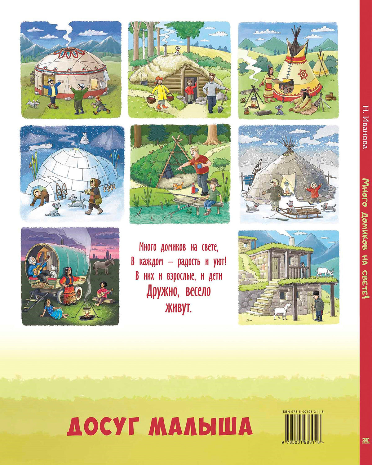 Handling time: 14 days В степях, лесах, горах – всюду живут люди! Вот только дома в разных уголках мира выглядят по-разному. Где-то жилища возводят из снега, где-то строят из дерева, где-то из камня… Какие-то домики умеют плавать по морю, а другие тают летом. И называются они по-разному: изба, чум, вигвам… Обо всех этих и многих других строениях малышам расскажет Наталья Иванова, а покажет, как они выглядят, – художник Владимир Юденков. Познавательная книжка в стихах с краткими полезными сведениями о строительстве разнообразных домов и забавными рисунками расширит кругозор ребенка.Для чтения взрослыми детям. Пять причин купить 1Необычная, увлекательная тематика книги - ребята узнают, какие дома строят в разных уголках планеты. 2Материал изложен в стихах и доступен даже самым маленьким читателям. 3Стихотворения дополнены познавательными заметками о том, из чего строятся жилища, что находится внутри и как поддерживается тепло. 4Интересные, красочные рисунки, отражающие особенности культуры и быта разных народов. 5Книга активно расширяет кругозор ребенка, демонстрируя многоликость окружающего мира.