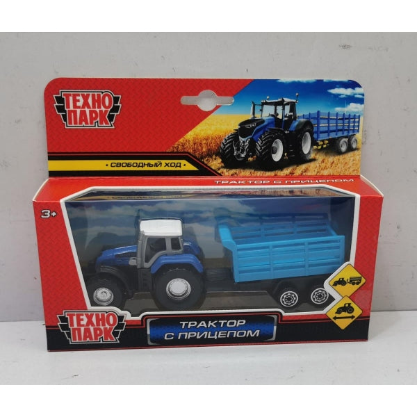 Модель металл ТРАКТОР С ПРИЦЕПОМ 16см, своб. ход, подв. прицеп Технопарк в кор.2*120шт