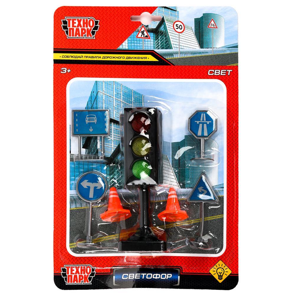 Игрушка "Модель пластикового света СВЕТОФОР С ДОРОЖНЫМИ ЗНАКАМИ, блистер Технопарк в кор.2*96шт". Размер: 0,269.