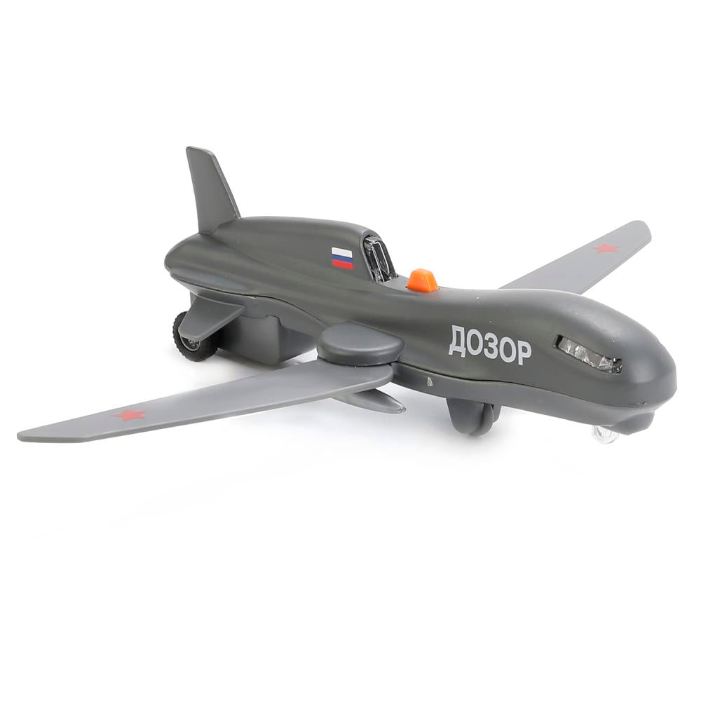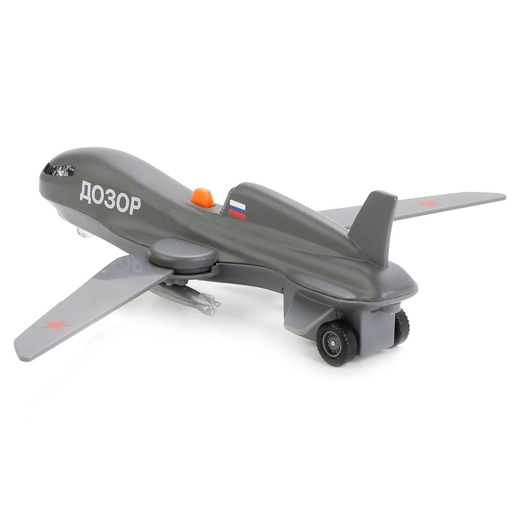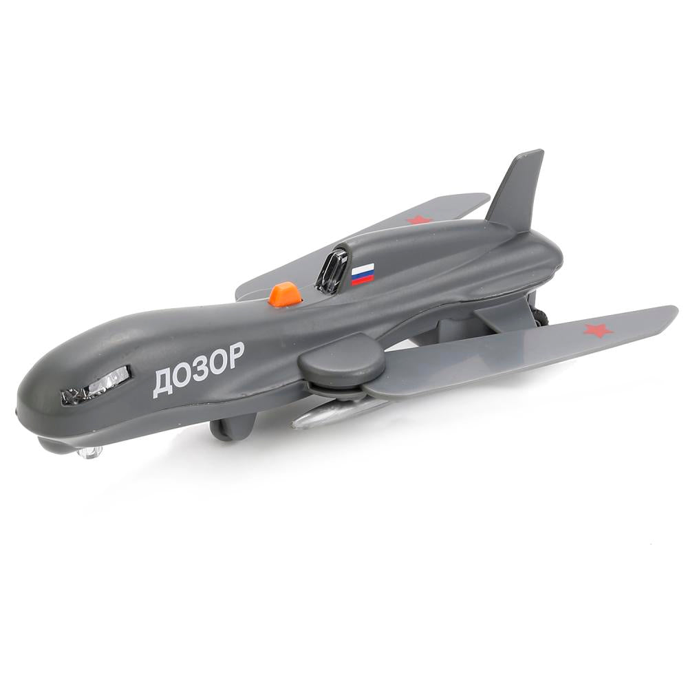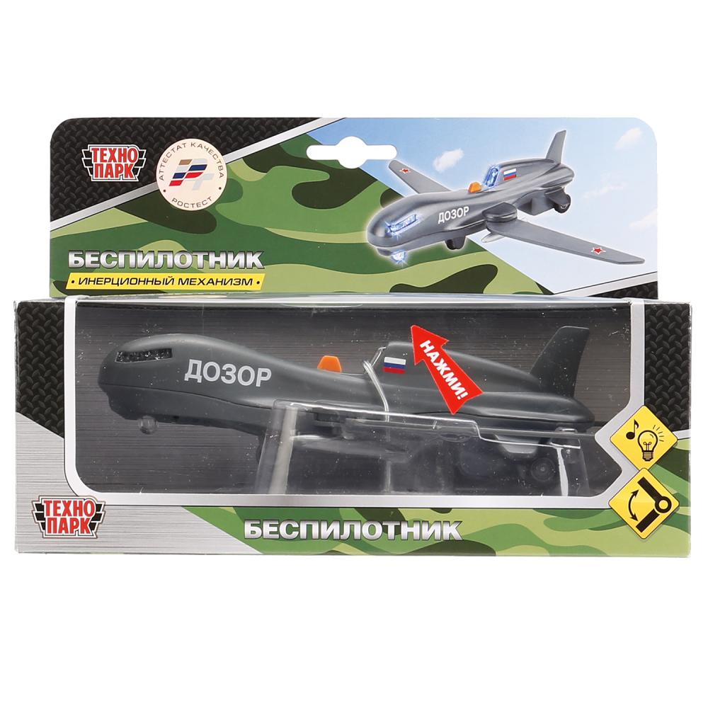МОДЕЛЬ "ТЕХНОПАРК" МЕТАЛЛ. ИНЕРЦ. БЕСПИЛОТНИК ДОЗОР 19СМ, СВЕТ+ЗВУК, СКЛ. КРЫЛЬЯ В КОР. в кор.2*24шт