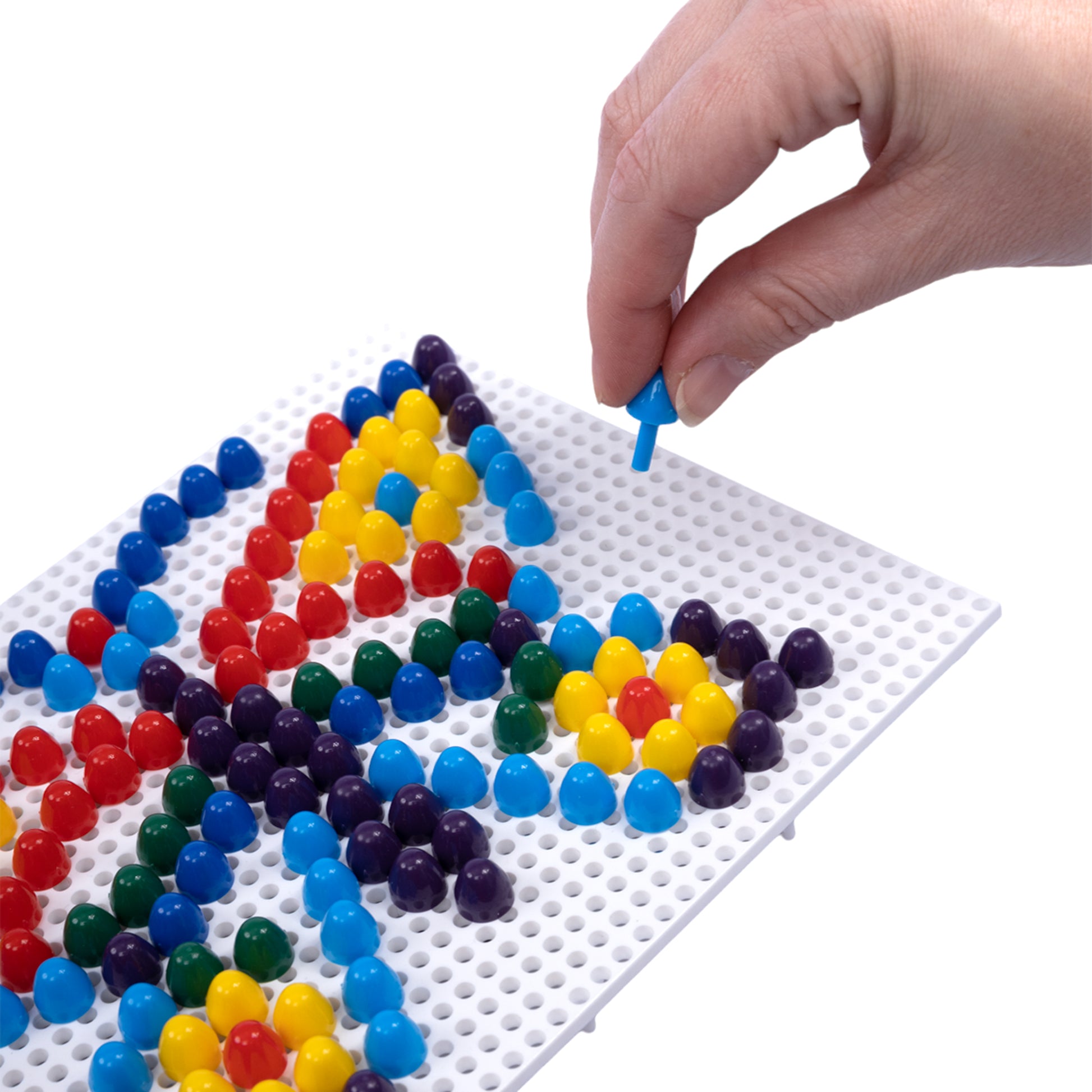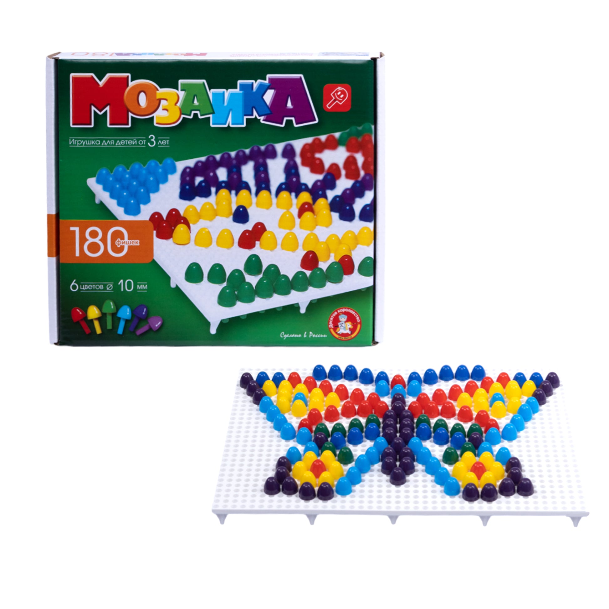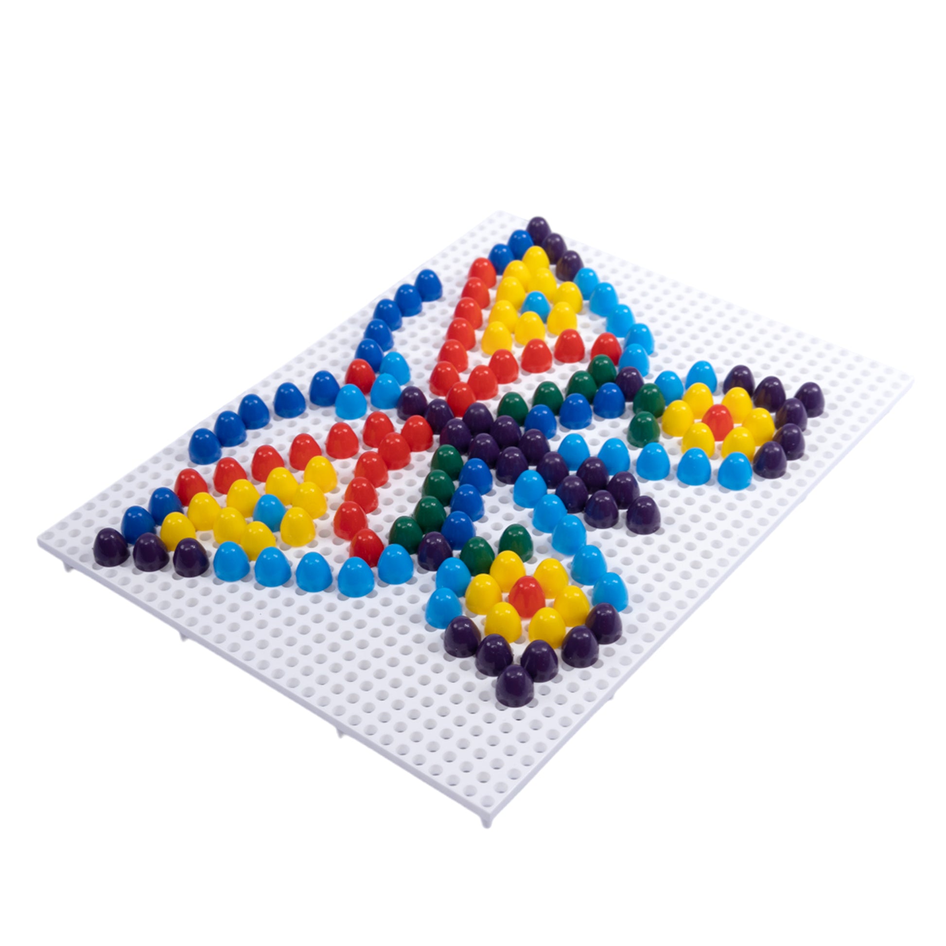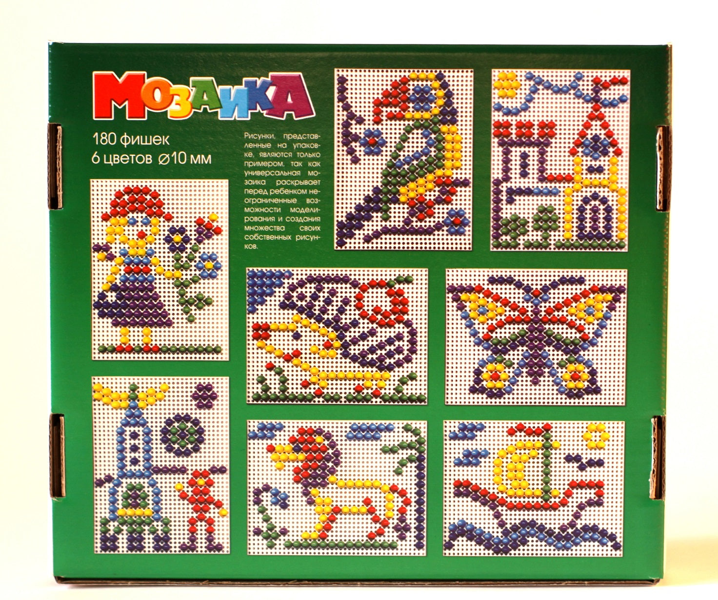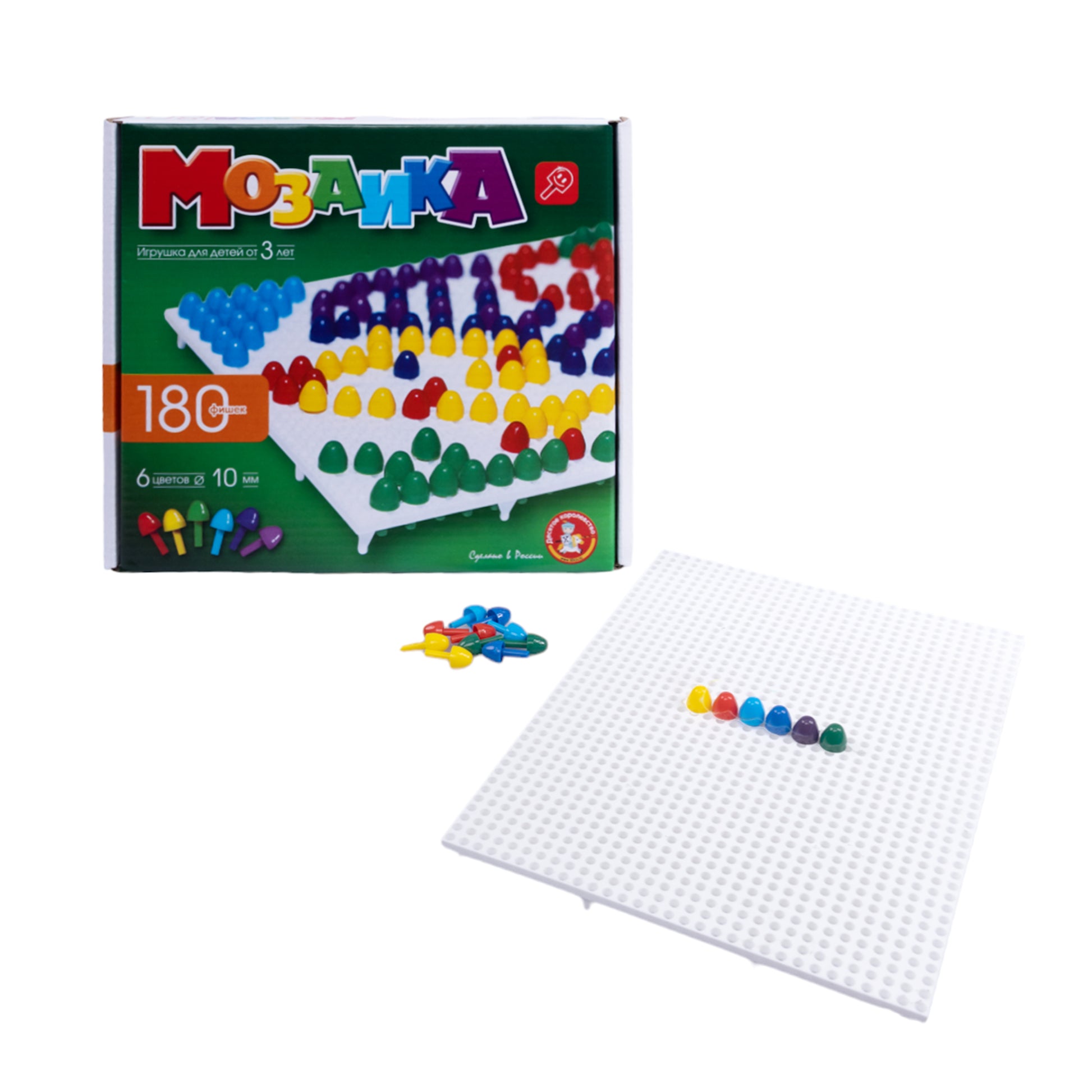 Мозаика пластмассовая:Наконечник мозаики - круглый 10 мм на ножкеКоличество мозаики - 180 шт Количество цветов - 6Полюс (плата) 230х200х35 мм - 1 шт