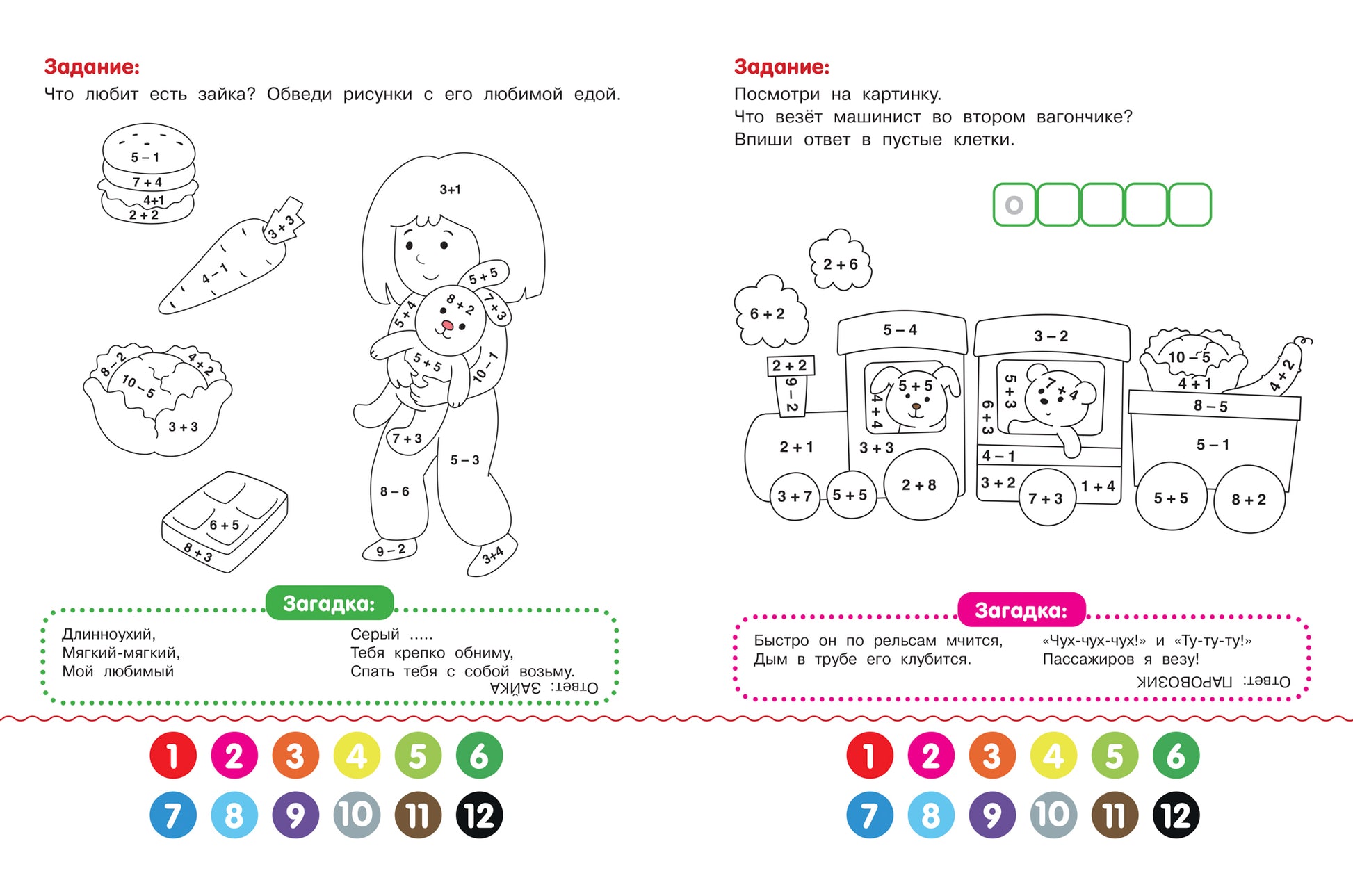 Умные раскраски с примерами помогут ребёнку весело и с пользой провести время, в игровой форме развивая у него внимание и память. Весёлые задания направлены на стимуляцию мелкой моторики и мышления, а также помогут закрепить начальные навыки счёта, чтения и письма. Решив простой пример, ребёнок запомнит цифры и цвета, а авторские загадки и стихи с договариванием на каждой странице, сопровождаемые ответами, прекрасно подойдут для первого самостоятельного чтения.