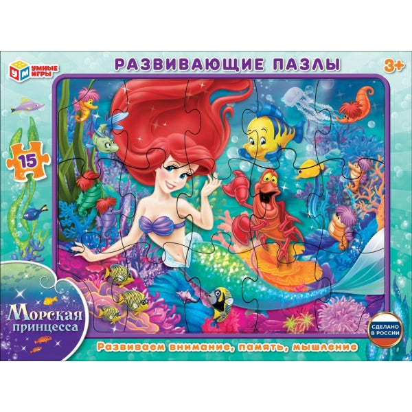 Морская принцесса. Пазл в рамке. 15 деталей. Развивающие пазлы. 285х215х2 мм. Умные игры в кор.50шт