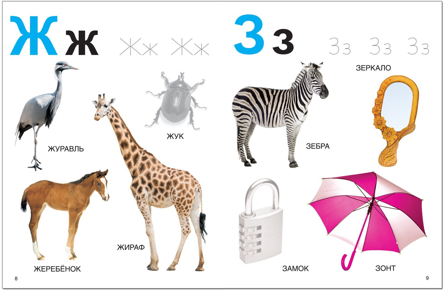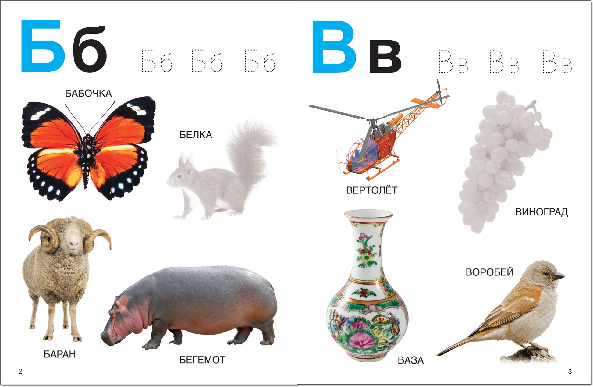 Яркие фотографии помогут быстро запомнить буквы, а пунктирные контуры - освоить их написание.