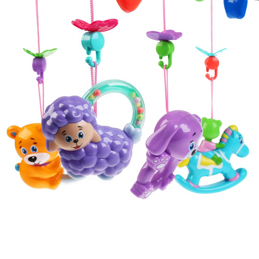 Мобиль легко и удобно крепится на кроватку, люльку или коляску. Его центральная часть выполнена в виде карусели, к которой крепятся 5 ярких игрушек. Карусель вертится, светится, издает чудесные музыкальные звуки.