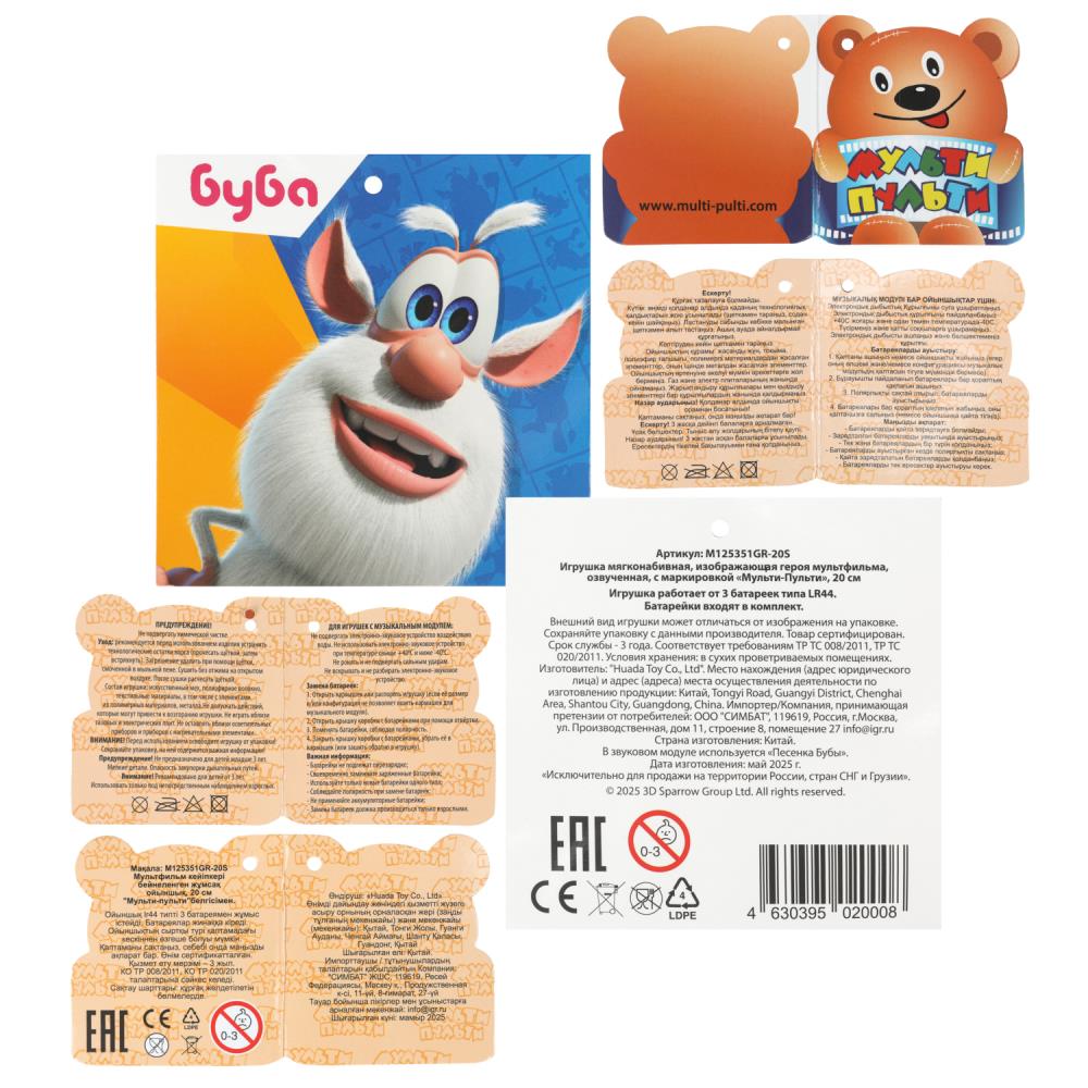 Handling time: 24 days Игрушка "Мягкая игрушка БУБА серый 20 см, вышитые глаза, озвуч. "МУЛЬТИ-ПУЛЬТИ" в кор.24шт". Размер: 0.053.